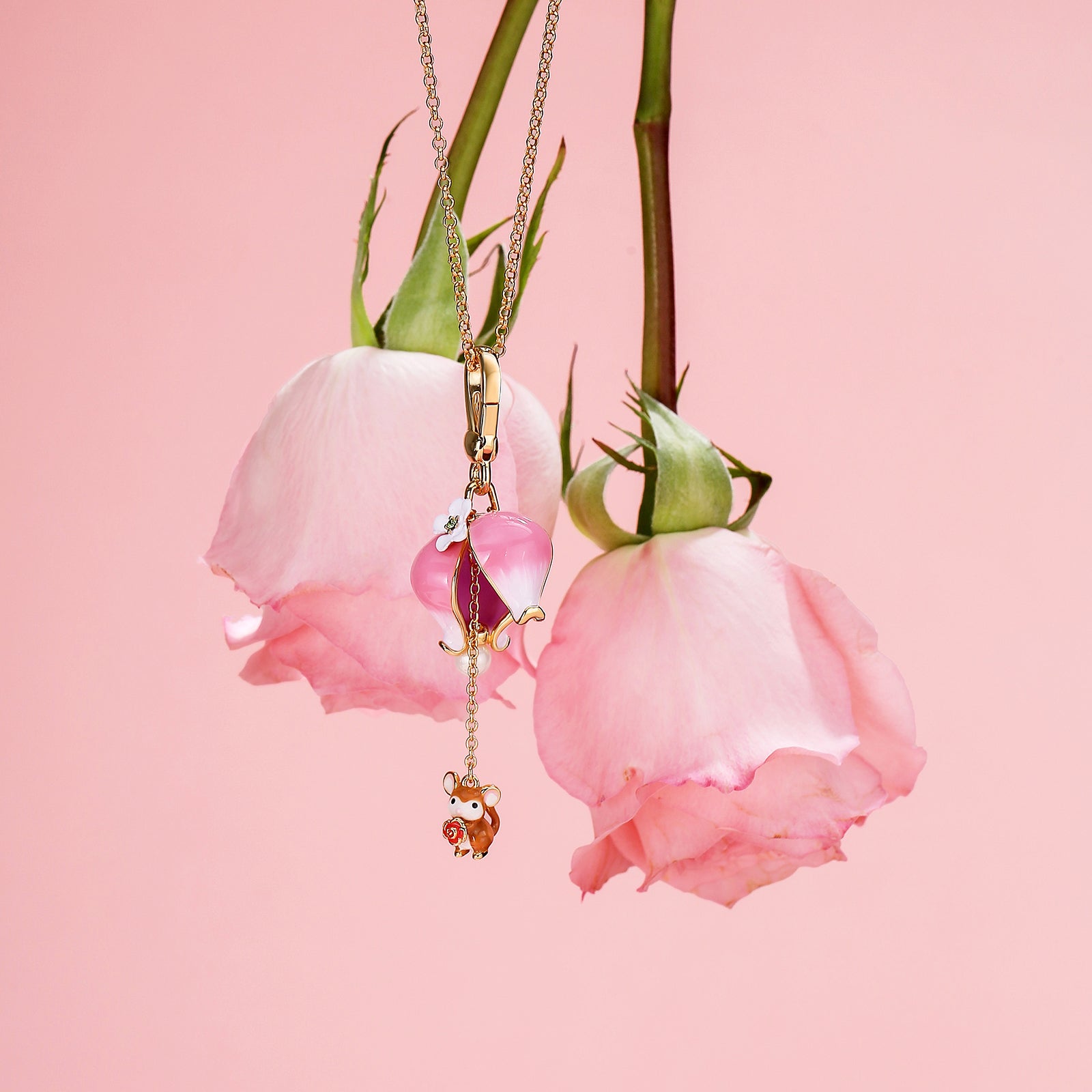 Open the pink rose petals to find a tiny hamster hugging a rose, a whimsical surprise that melts the heart. The Rose Hamster Locket Necklace sparkles with charming detail, making it a whimsical piece of nature-inspired jewelry and a perfect Valentine’s Day gift for her. Its playful design and heartfelt theme bring a touch of romance and joy to any outfit, creating a keepsake she’ll treasure. 🌹🐭💖