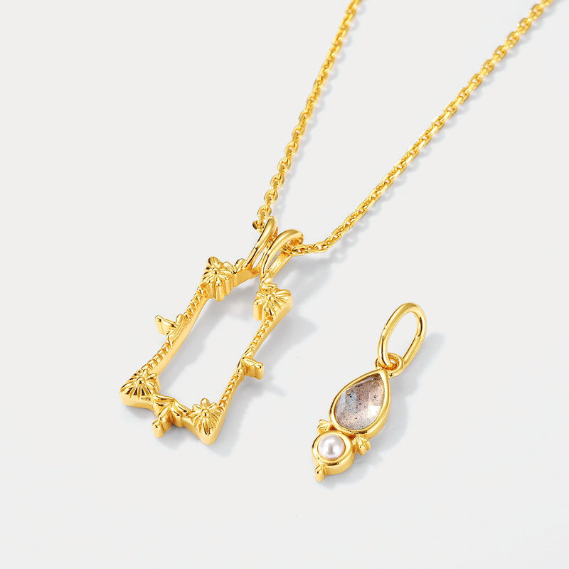 Meet a piece that’s as versatile as it is mesmerizing — our Vintage Labradorite Necklace. The labradorite catches the light in flashes of blue and green, like a secret little galaxy you can wear. Its antique-style frame gives it that old-soul charm, while the detachable pendant lets you switch things up in a snap.