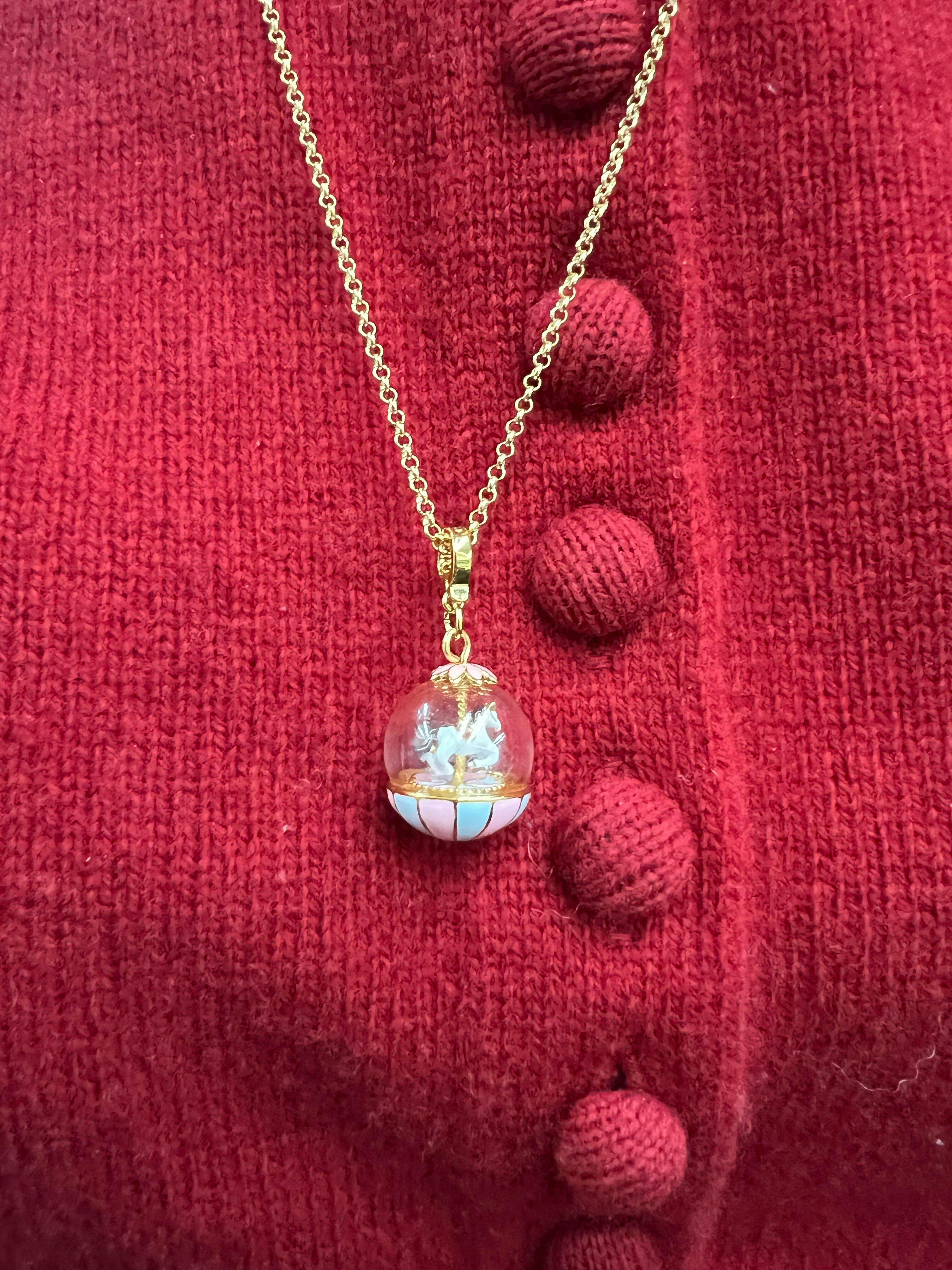 This necklace is so magical and whimsical! The little carousel inside the globe is perfectly detailed, and the soft pastel colors make it feel dreamy and vintage. 😻 Totally in love with this one!