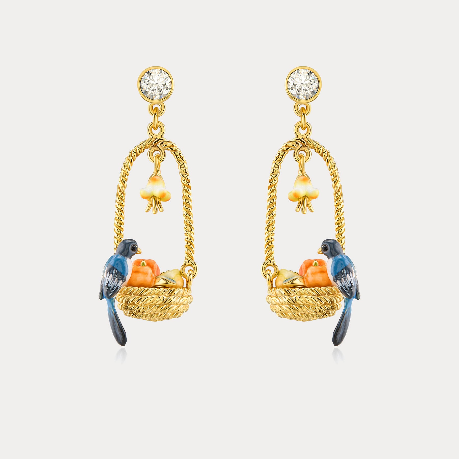 Enamel Magpie & Persimmon Basket Earrings Gift