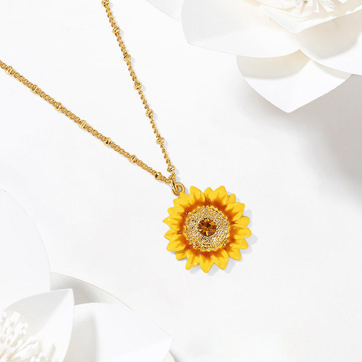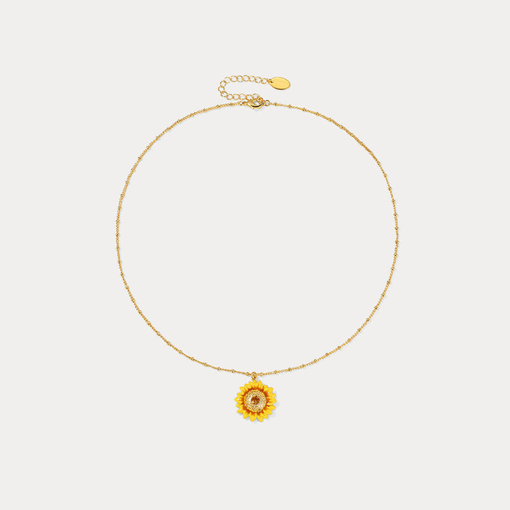 Diese Halskette zeigt einen komplizierten Sonnenblumenanhänger mit Messingumzähler und strahlt einen charmanten skurrilen Stil aus, der die Essenz der Cottagecore -Ästhetik einfängt. Mit seiner zarten Handwerkskunst und seiner sorgfältig gefertigten Design wird diese elegante Halskette jeden Look mit einer Aura müheloser Raffinesse vervollständigen. Die Sonnenblumenkette aus dem Selenichast Store erhält moderne und elegante Details in diesem auffälligen Stück.