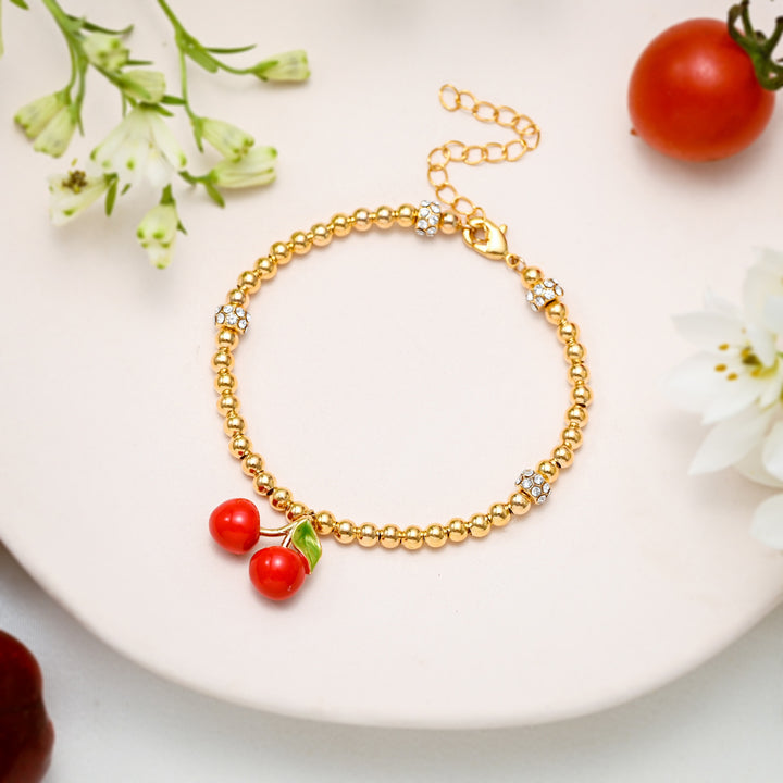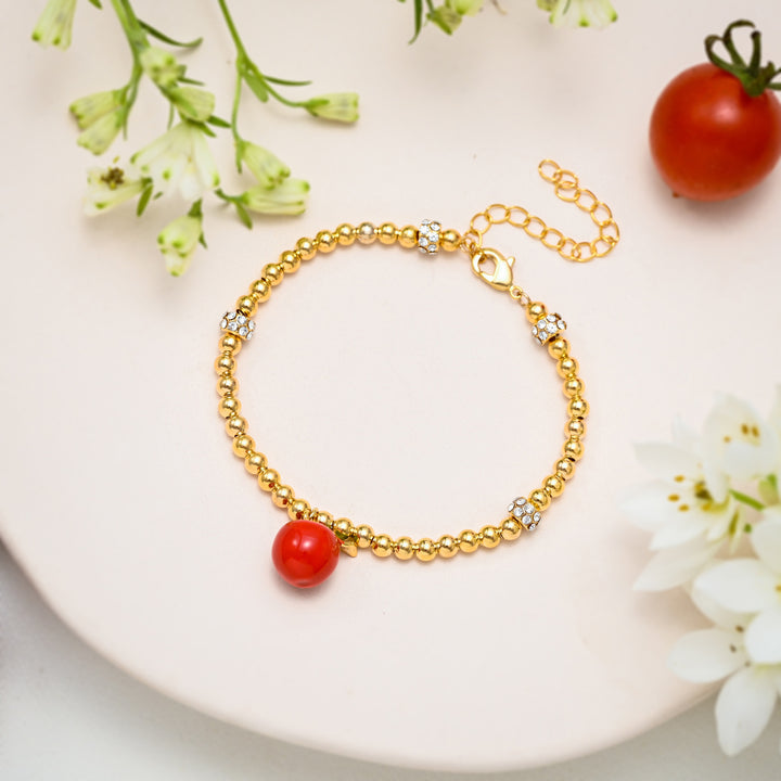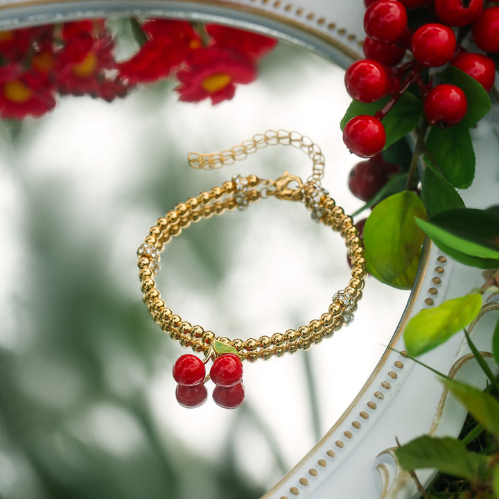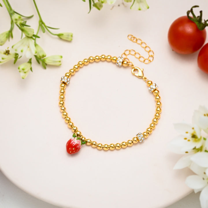 This bracelet is just the cutest—tiny strawberries that look good enough to eat! 🍓💕