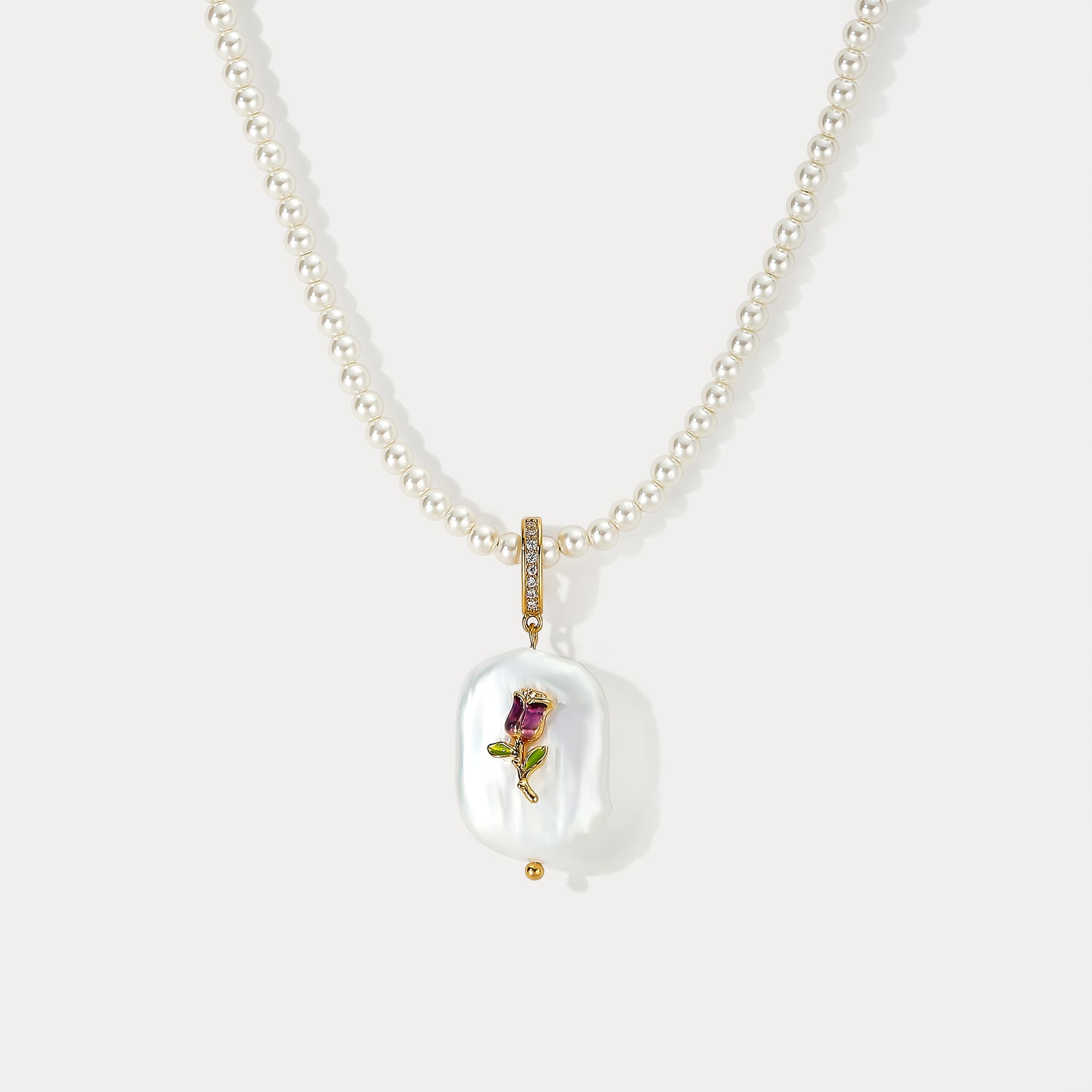 Each baroque pearl carries its own organic shape, paired with a romantic rose detail for a look that feels naturally elegant. The Rose Baroque Pearl Necklace celebrates individuality and softness, blending floral design with the luminous beauty of baroque pearls. Timeless yet expressive, this pearl necklace adds depth and character to any jewelry collection.