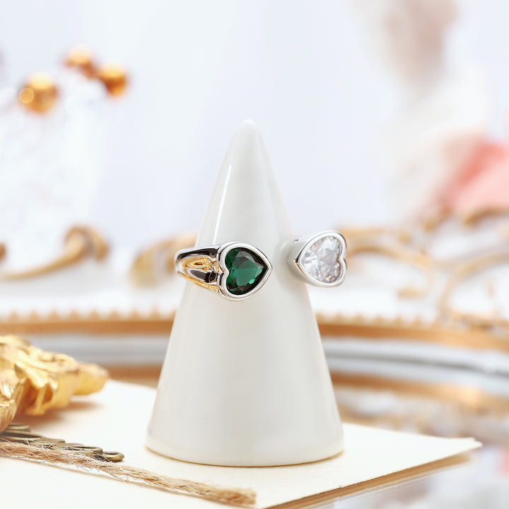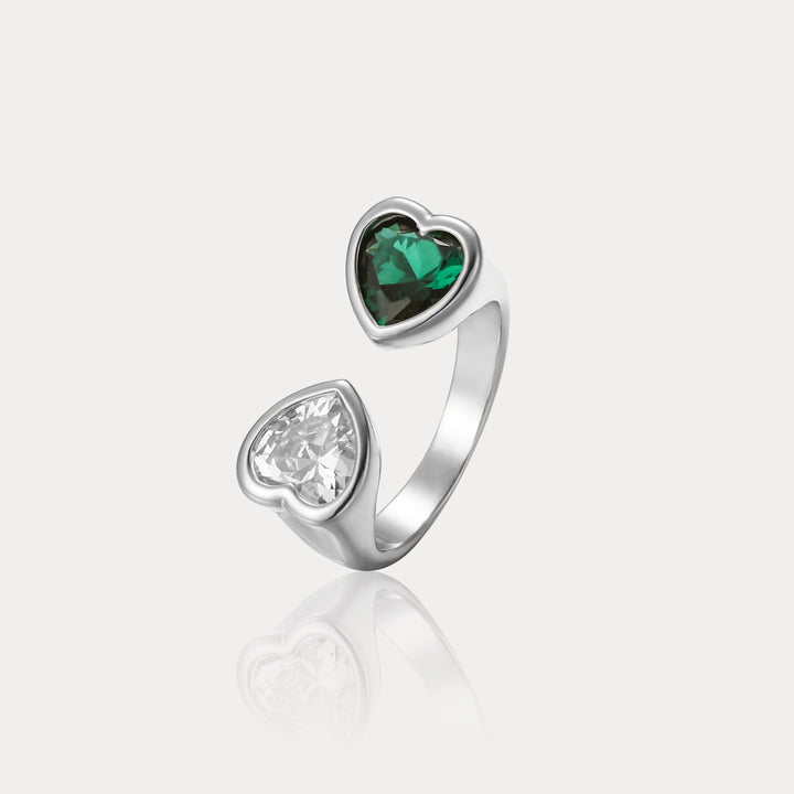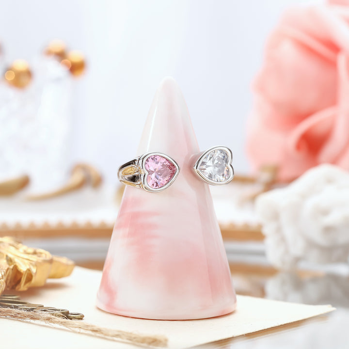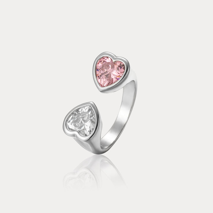 Dieser elegante Ring verfügt über ein verstellbares Design und verfügt über zwei herzförmige Edelsteine, wodurch er zum perfekten Accessoire für jeden Look ist.