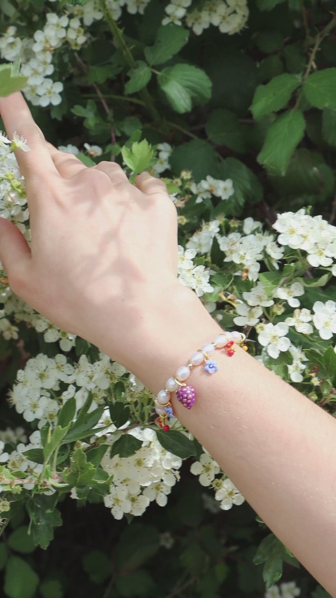 Imagine wearing a Fruit Basket Enamel Bracelet, colorful and fun, symbolizing the rich variety of summer fruits. Pair it with our Fruit Pearl Necklace for an elegant look.