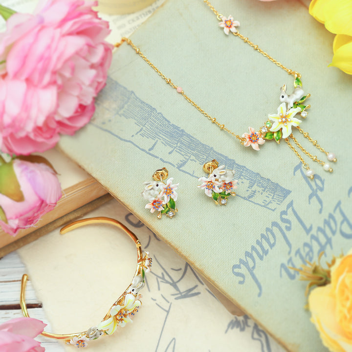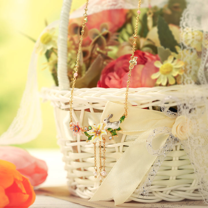 Wie wäre es, wenn wir in das Wunderland unserer flauschigen Häschenkette eintauchen? Inspiriert von der liebenswerten und verspielten Natur der Kaninchen des Landes ist dieses entzückende Stück mit kultivierten Perlen und zarten rosa Emailleblumen geschmückt. Handgepackt und auf einer goldplattierten Kette gesetzt, ist das perfekte Accessoire, um Ostern zu feiern und die blühenden Jahreszeiten zu umarmen. 🐰