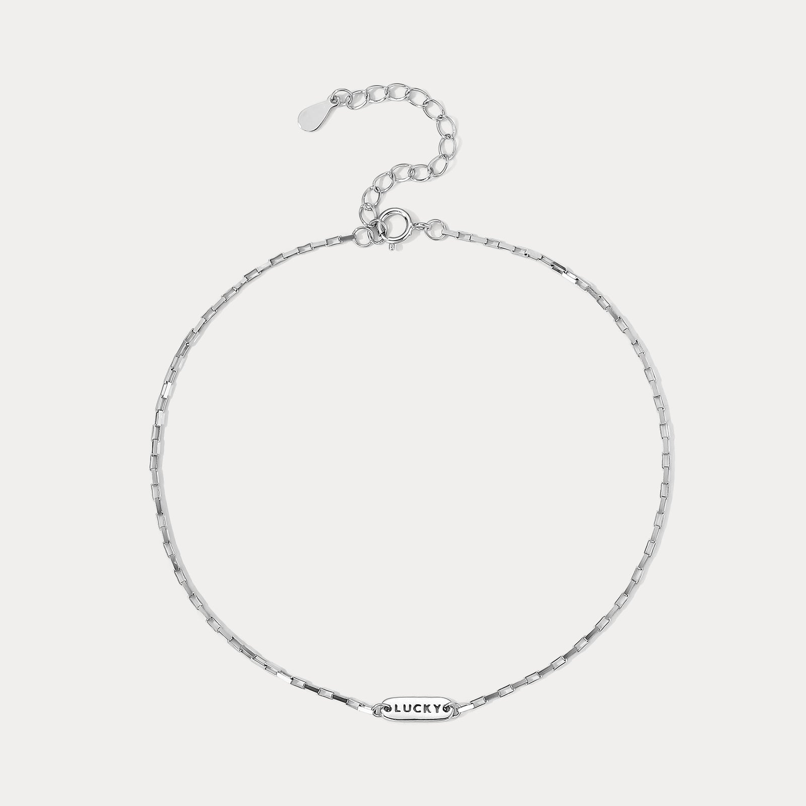 Silver Lucky Anklet rests lightly around the ankle, where a tiny engraved tag reading “lucky” catches the light with a quiet, personal charm. Its minimal design feels soft and effortless, adding a subtle hint of meaning to your everyday style while moving gently with each step. A delicate piece in everyday jewelry, it brings a touch of positivity, simplicity, and understated elegance.