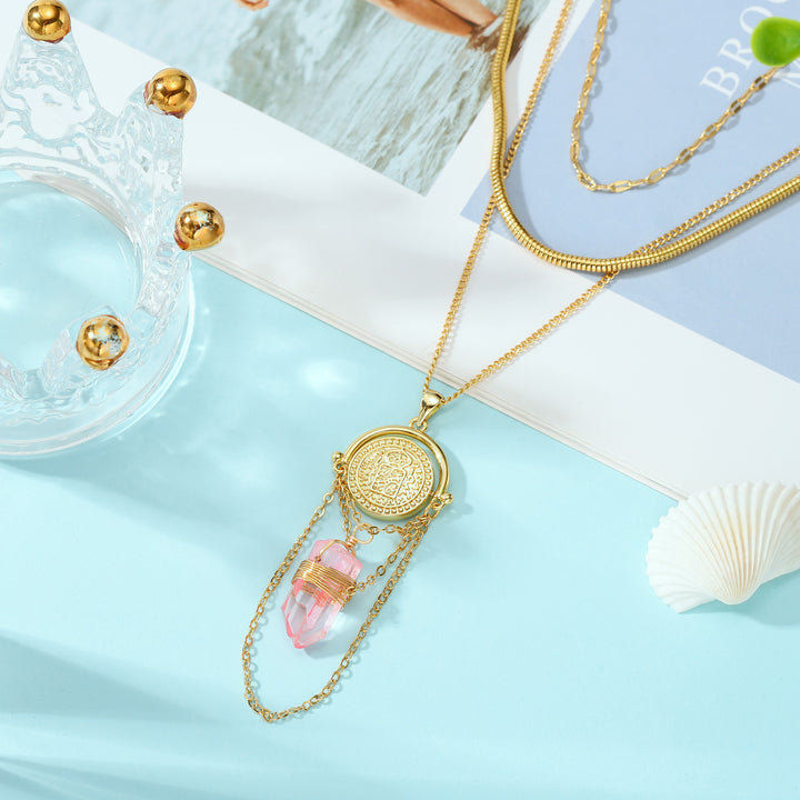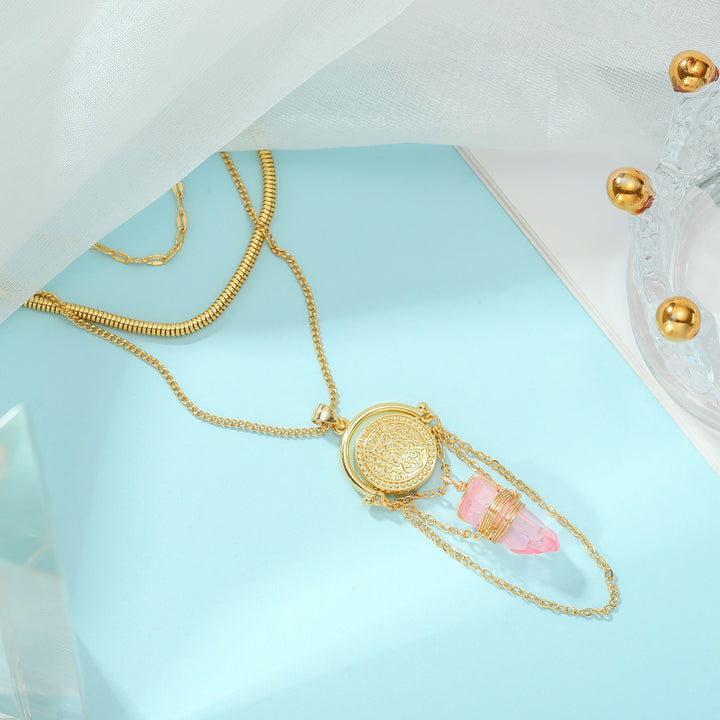 This luxurious Layered Rose Quartz Necklace features two tiers of gemstone and copper links, designed to add a refined and sophisticated touch to any outfit. Handcrafted with the highest quality materials, this necklace is sure to stand out and turn heads. Perfect for any special occasion.
