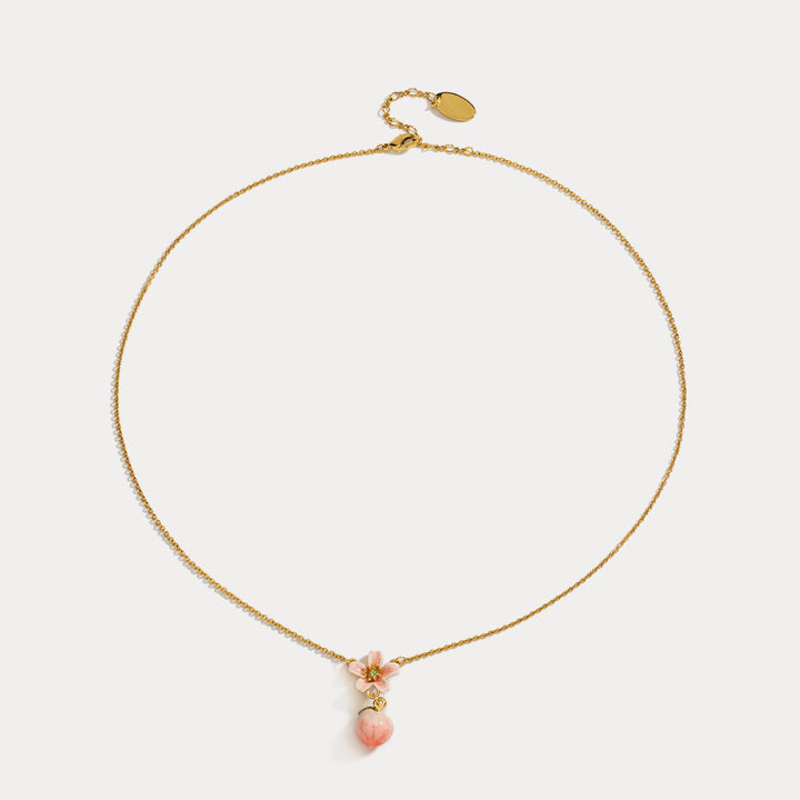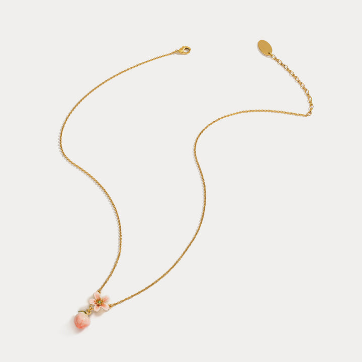 We took inspiration for Peach Necklace from Summer Fruit Paradise. With hand-painted layered petals and a luscious peach, our necklace offers a fresh take on the classic and brings its undeniable charm and character to your day. Tip from our team: combine this piece with our Peach Blossom Bracelet to create a set of jewellery for women.