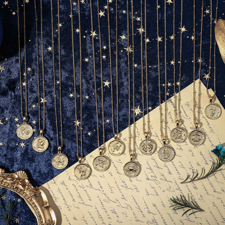 This exquisite 18K gold-plated brass Constellation Coin Pendant Necklace is a subtle yet sophisticated statement piece. Show off your own stellar style with this lovely one of a kind necklace, perfect for any refined evening look.