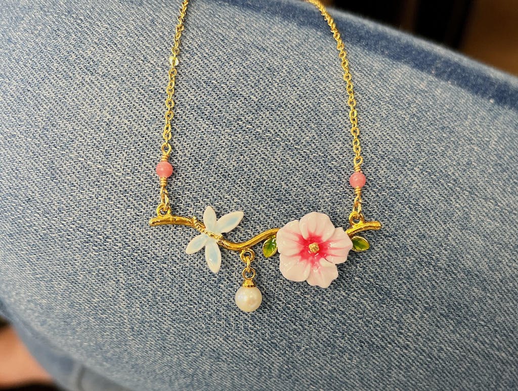 Stunning hibiscus jewelry gives satisfaction to women to add a floral, sweet and elegant touch to their everyday outfits. Lovely hibiscus jewelry that features enameled white-pink blooms, green leaves and a light blue butterfly give us delight in its loveliness and sweetness while its exquisite enameled workmanship enhances its vividness. A fine piece that women can not miss.