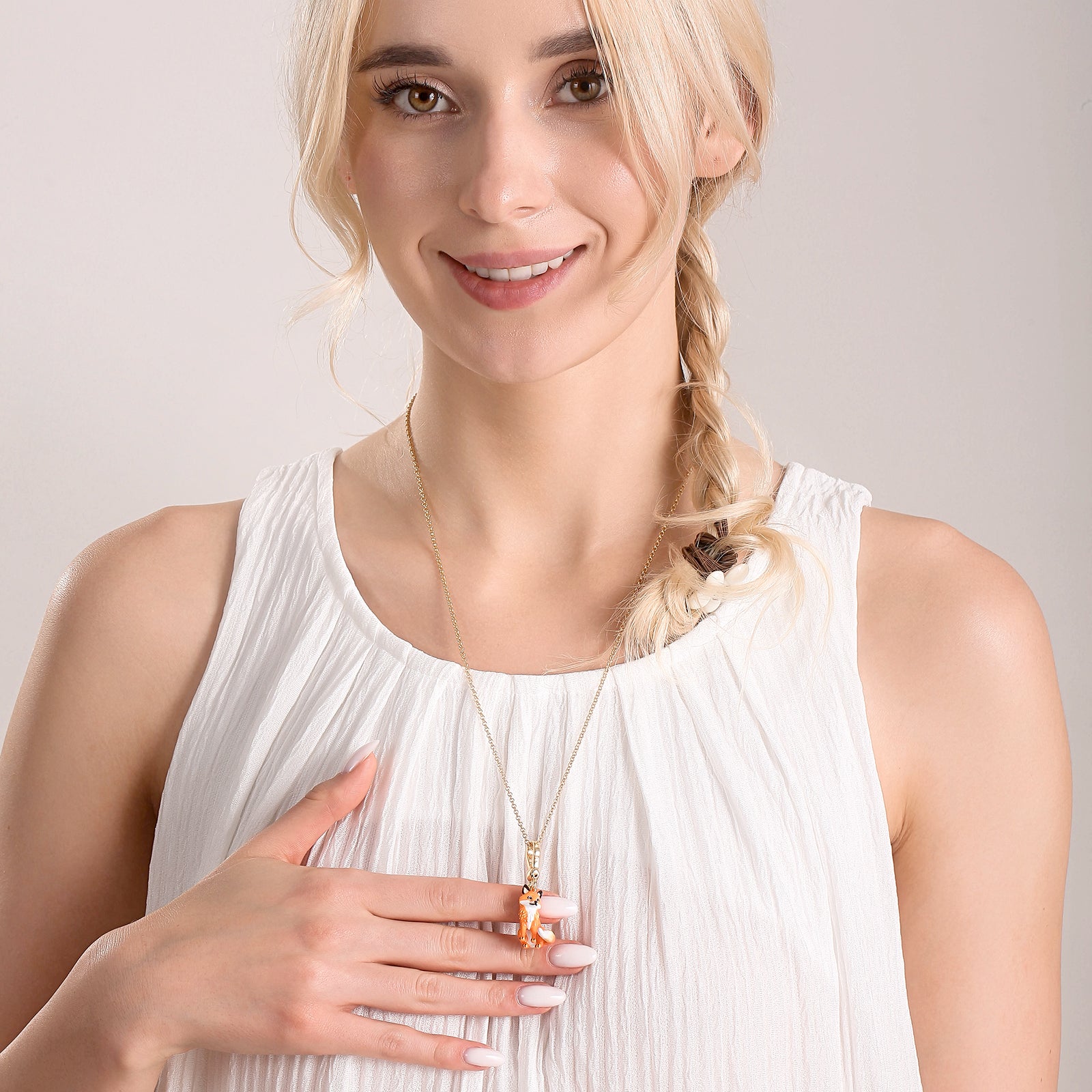 Charming and graceful, the Fox Pendant Necklace captures the spirit of the clever little fox with elegant simplicity. 🦊✨ Crafted with fine details, the pendant glimmers softly as it rests against your collarbone, adding a hint of mystery and warmth. Perfect for those who adore nature-inspired elegance, this necklace brings a touch of quiet sophistication and playful charm to your everyday look.