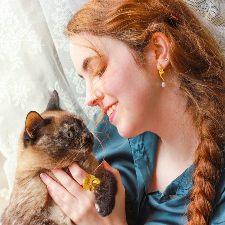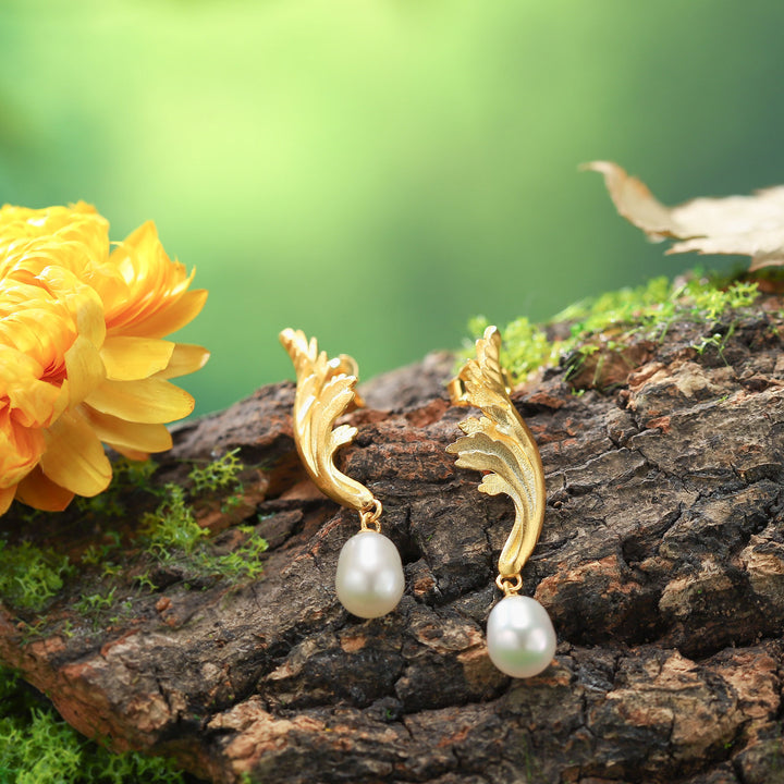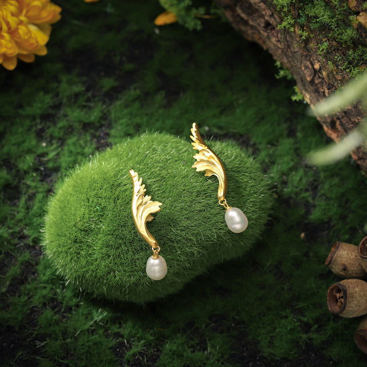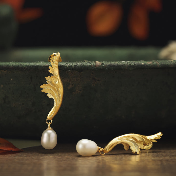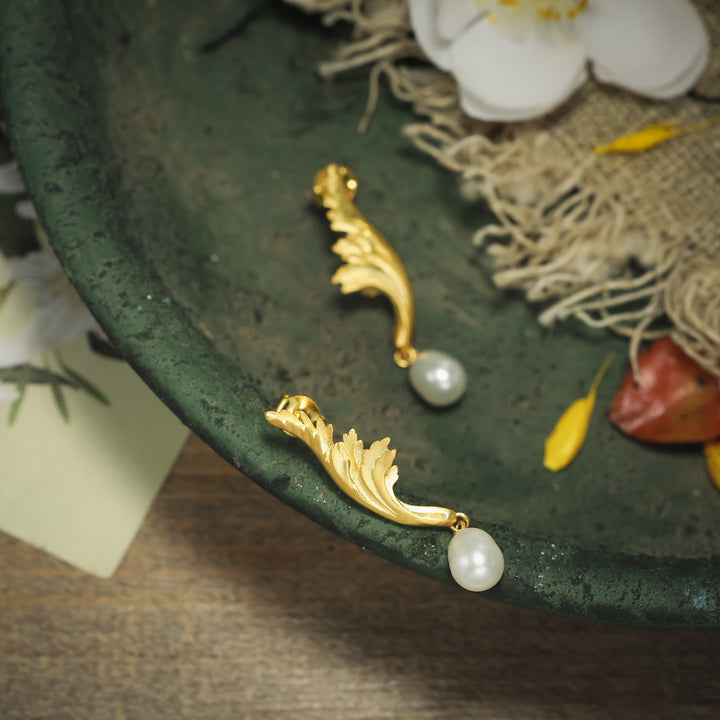 The Carved Acanthus Leaf Pearl Earrings, with their intricate design of gold on silver, epitomize classicality and artistry. Perfect as a gift, they exude timeless beauty and creative imagination. The acanthus leaf motif and lustrous pearls add an elegant touch, making these earrings a captivating fusion of art and fashion.