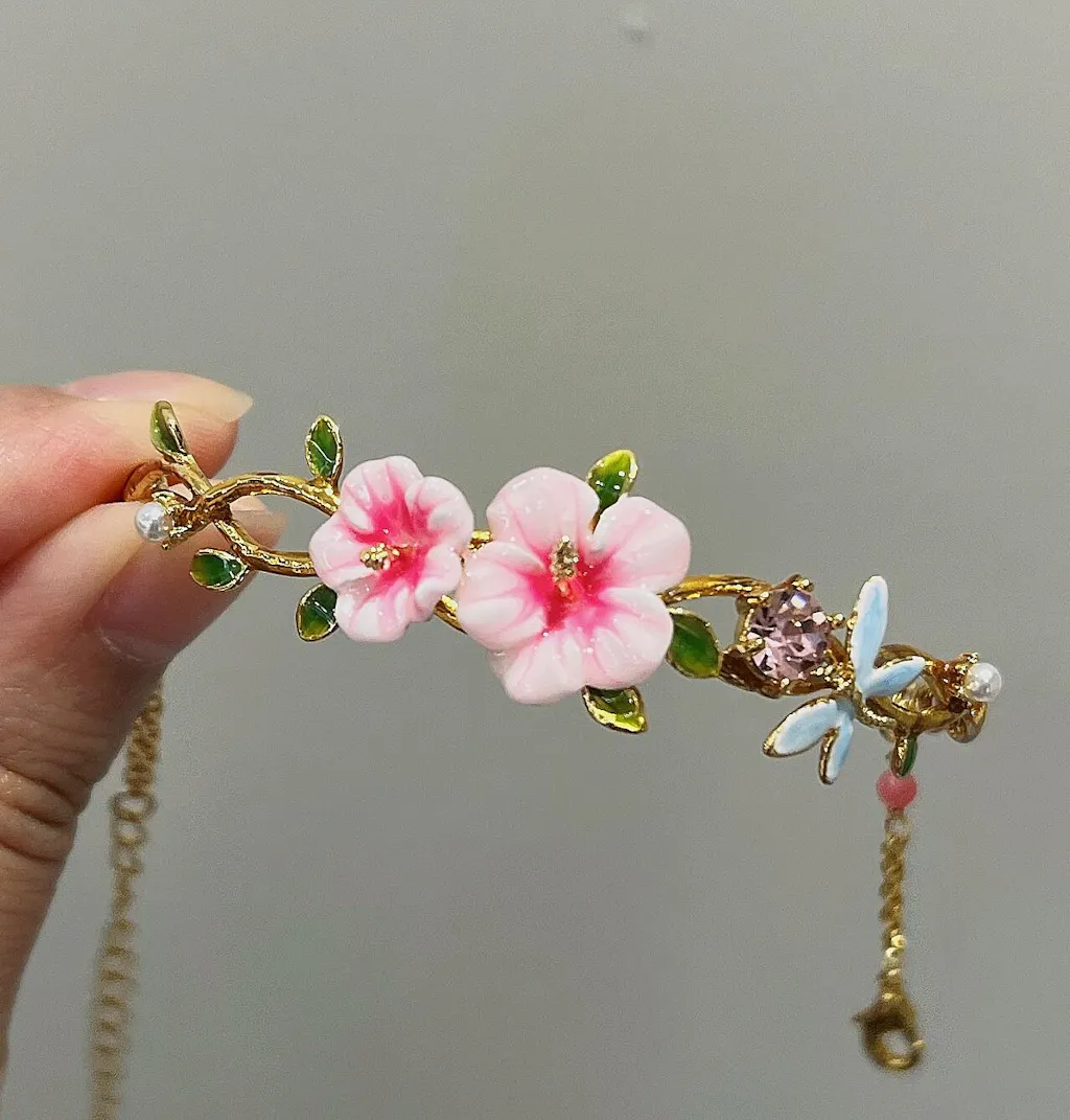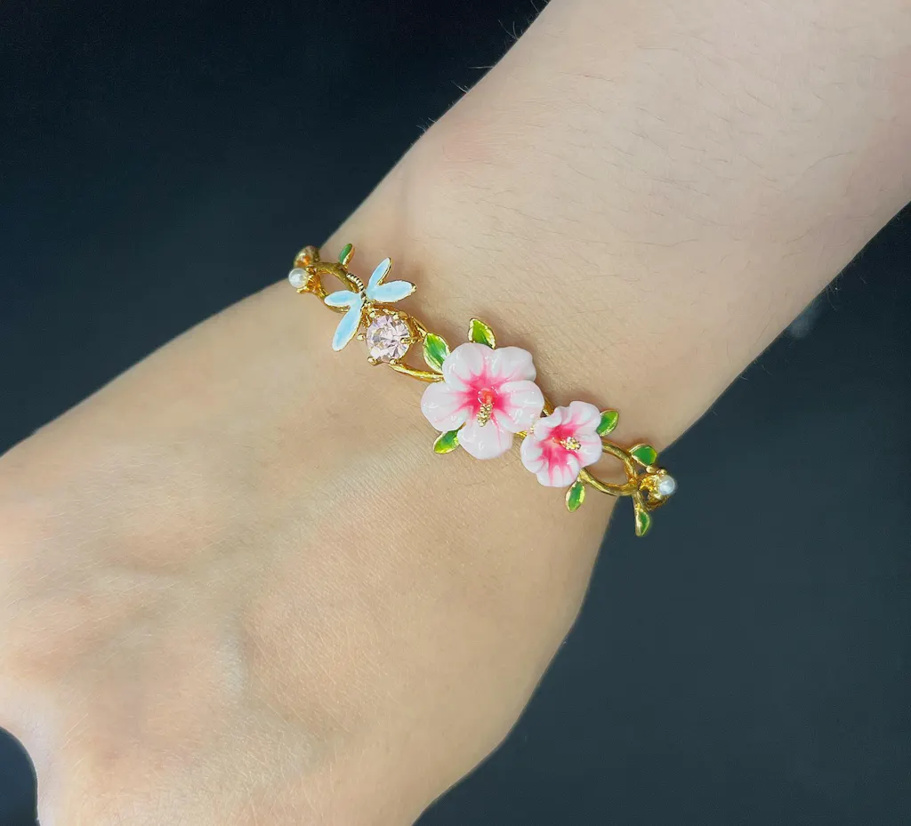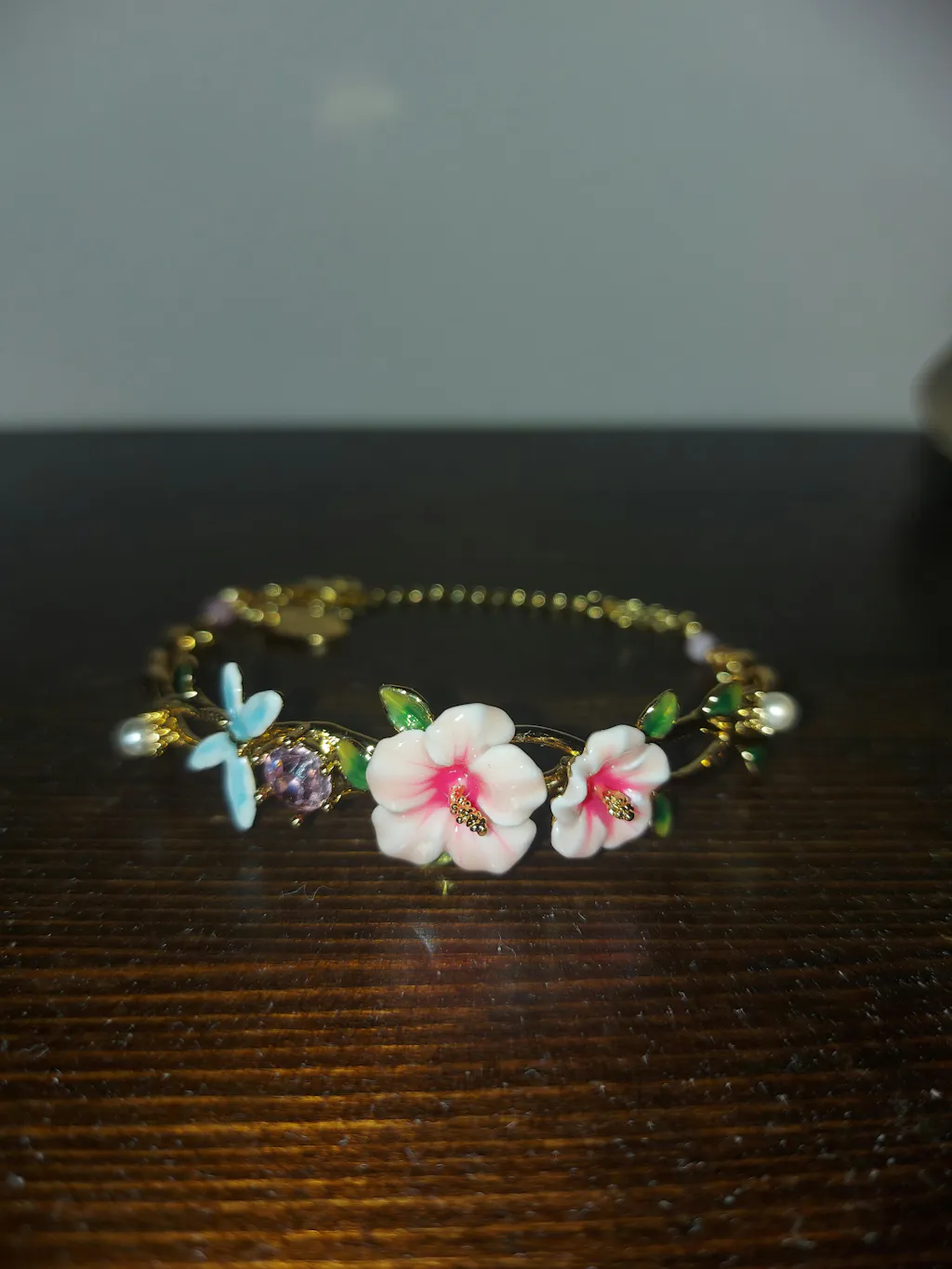 Stunning hibiscus jewelry gives satisfaction to women to add a floral, sweet and elegant touch to their everyday outfits. Lovely hibiscus jewelry that features enameled white-pink blooms, green leaves and a light blue butterfly give us delight in its loveliness and sweetness while its exquisite enameled workmanship enhances its vividness. A fine piece that women can not miss.
