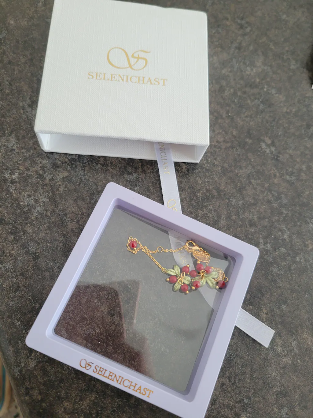 Store your jewelry in your original Selenichast box (and keep it in a cool, dry spot) to maintain luster and prolong life. If you need to clean your jewelry, only use a non-abrasive cotton or microfiber cloth.