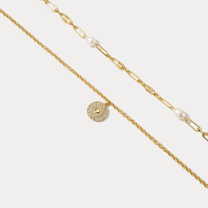 The perfect addition to any outfit, the Evil Eye Pearl Layered Necklace adds a hint of elegance to any look. Made with a brass pearl and intricate silver detailing, this piece is perfect for accessorizing for any dinner party or gift. Make a statement with its unique layered design; you'll look gorgeous no matter the occasion.