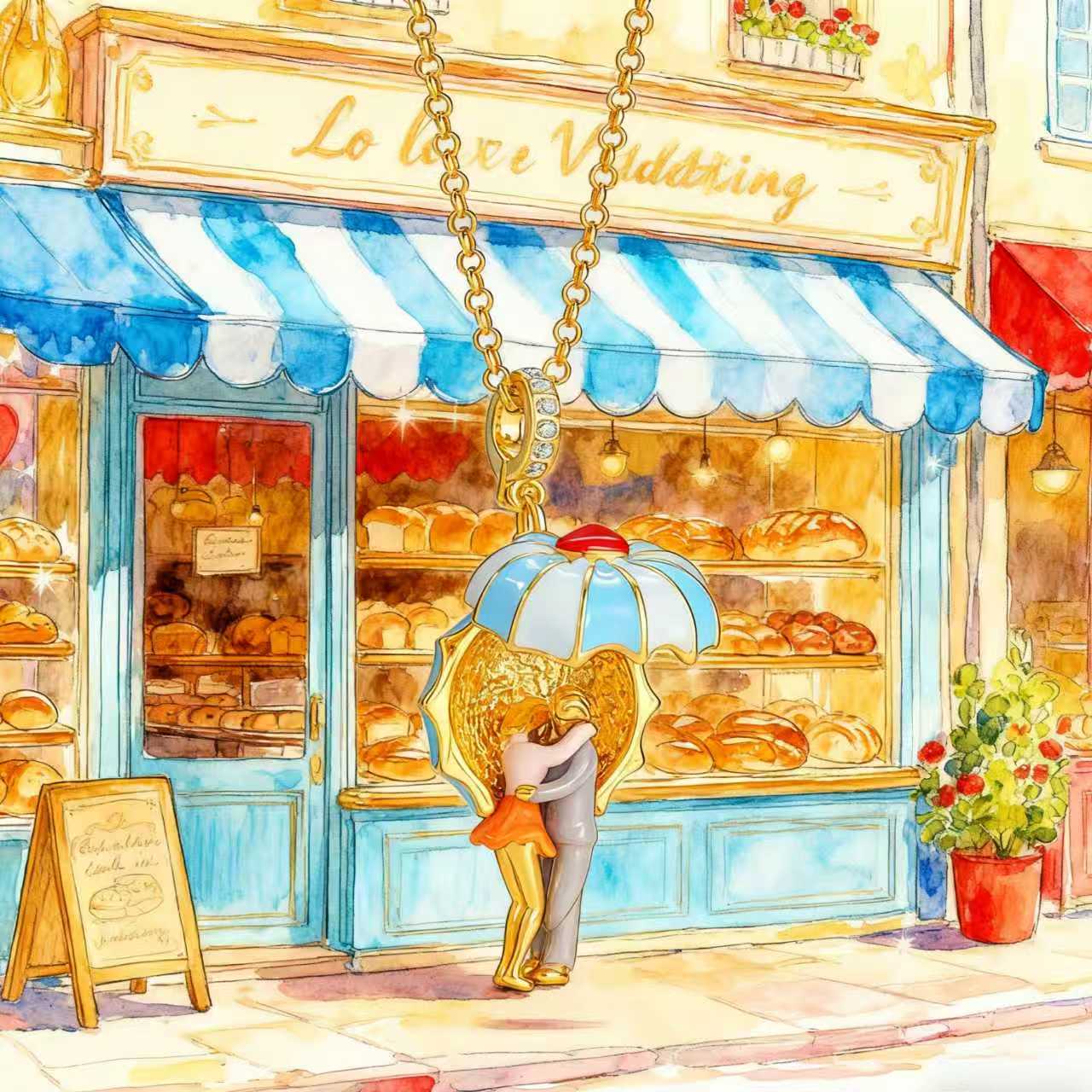 Selenichast Umbrella Lovers Locket Necklace