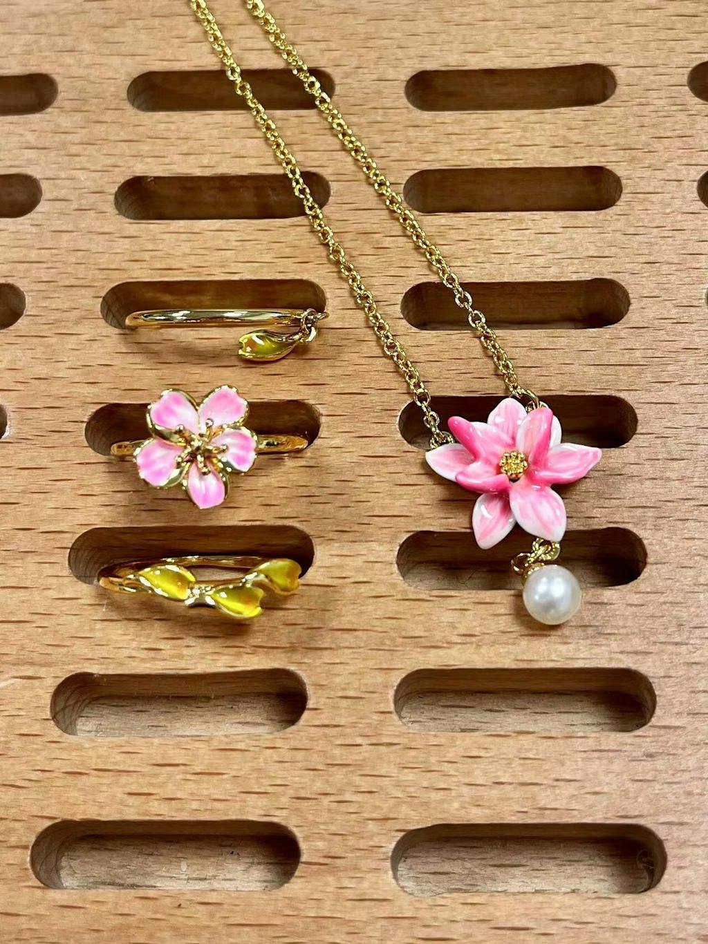 OMG The magnolia is totally my type. It's sooo beautiful! The white pearl fits the pink flower a lot. Enjoy wearing it.