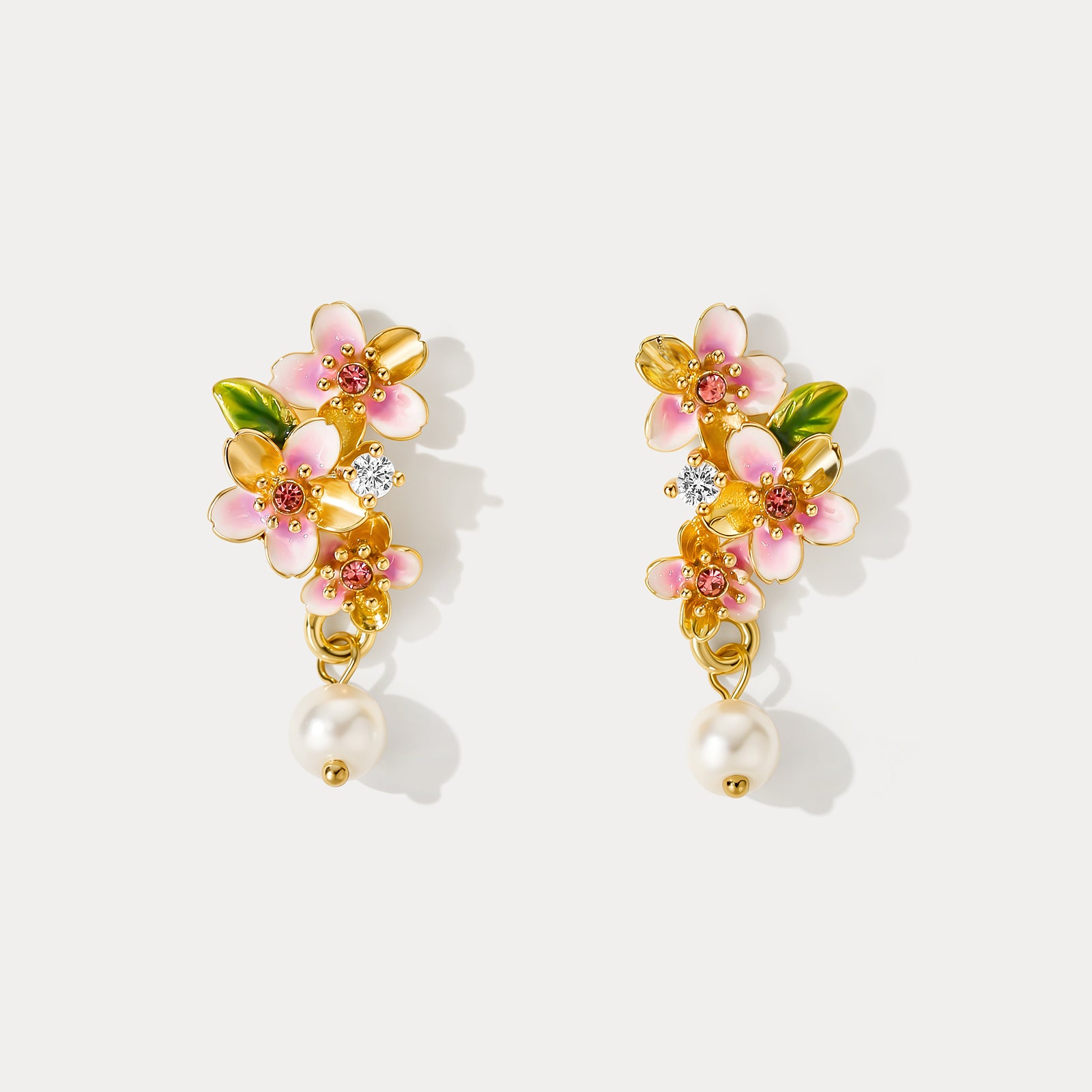 Elegant enamel cherry blossoms cascade in a lightweight drop design, bringing delicate movement and charm. Finished with 18K Gold Plated details, these earrings capture the freshness of spring in a wearable piece of art. A thoughtful Gift for Her, perfect for daily wear or special occasions.