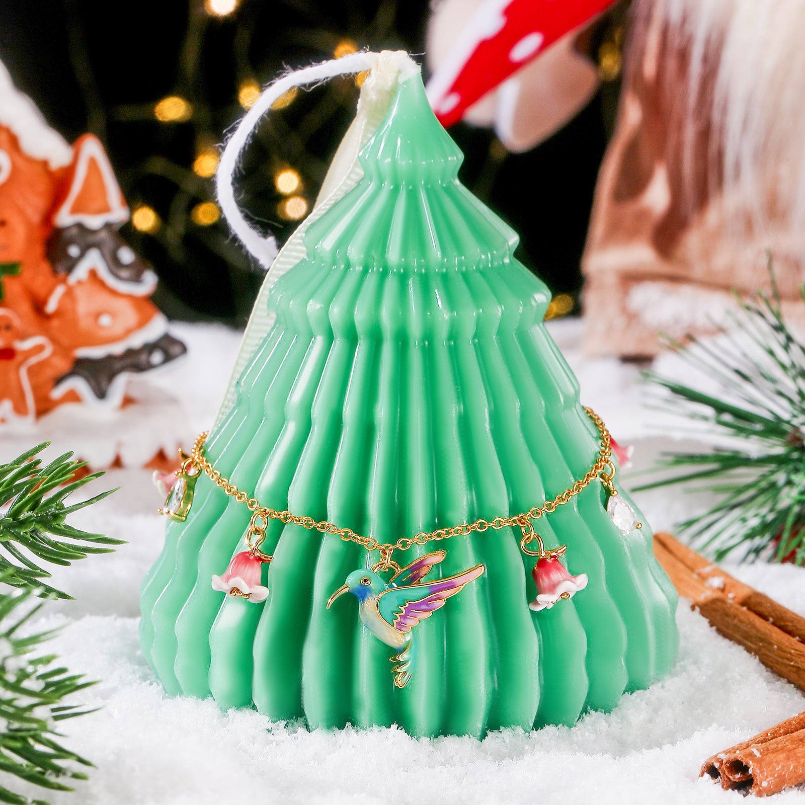 Elevate your style with a touch of nature's wonder through our Enamel Hummingbird Bracelet, a piece that artfully captures the vibrant spirit of the hummingbird. This bracelet features a beautifully crafted hummingbird charm, brought to life with a vivid blend of blue and green enamel that reflects the bird's lively essence. The delicate design of the hummingbird, mid-flight, adds a dynamic element to this exquisite piece. The specialty of this bracelet lies in its ability to blend playful charm with refined craftsmanship. Let this bracelet be the piece that brings a little bit of nature’s magic to your jewelry collection, adding both beauty and meaning to your style.
