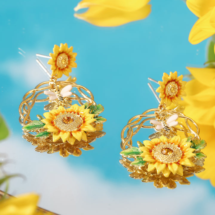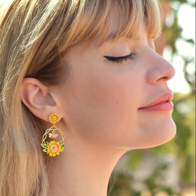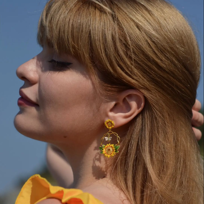 Bees represent wisdom and immortality. Bees symbolize love and also fidelity and virginity. Beautiful sunflower are a symbol of beauty joy and hope, it can bring you light. Wear this little queen bee every day because you are amazing in every way! Our perfect pair of Sunflower & Bee Earrings make the ideal Birthday gift: timeless, delicate, and adorned with splendor. Exquisitely crafted in a unique and luxurious style, these earrings will bring light and joy to any special day.