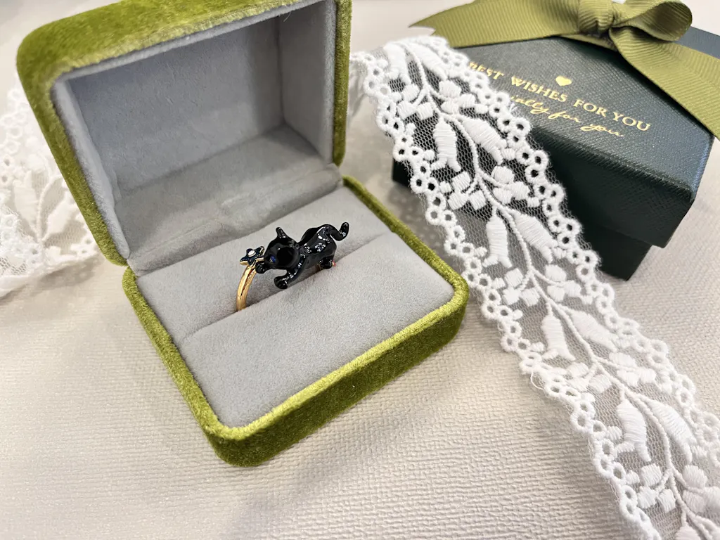 This exquisite Black Cat Ring is a luxurious and timeless addition to your jewelry collection. Crafted with high-quality brass and enamel, it boasts a stunning cottagecore aesthetic that is sure to elevate your look. Perfect for everyday wear or special occasions, wear it as a reminder to embrace all the unexpected joys life brings. Black Cat Ring is an adjustable ring from nature jewelry collection on Selenichast  online shop. This is a piece of fine jewelry and can light up your jewelry box.