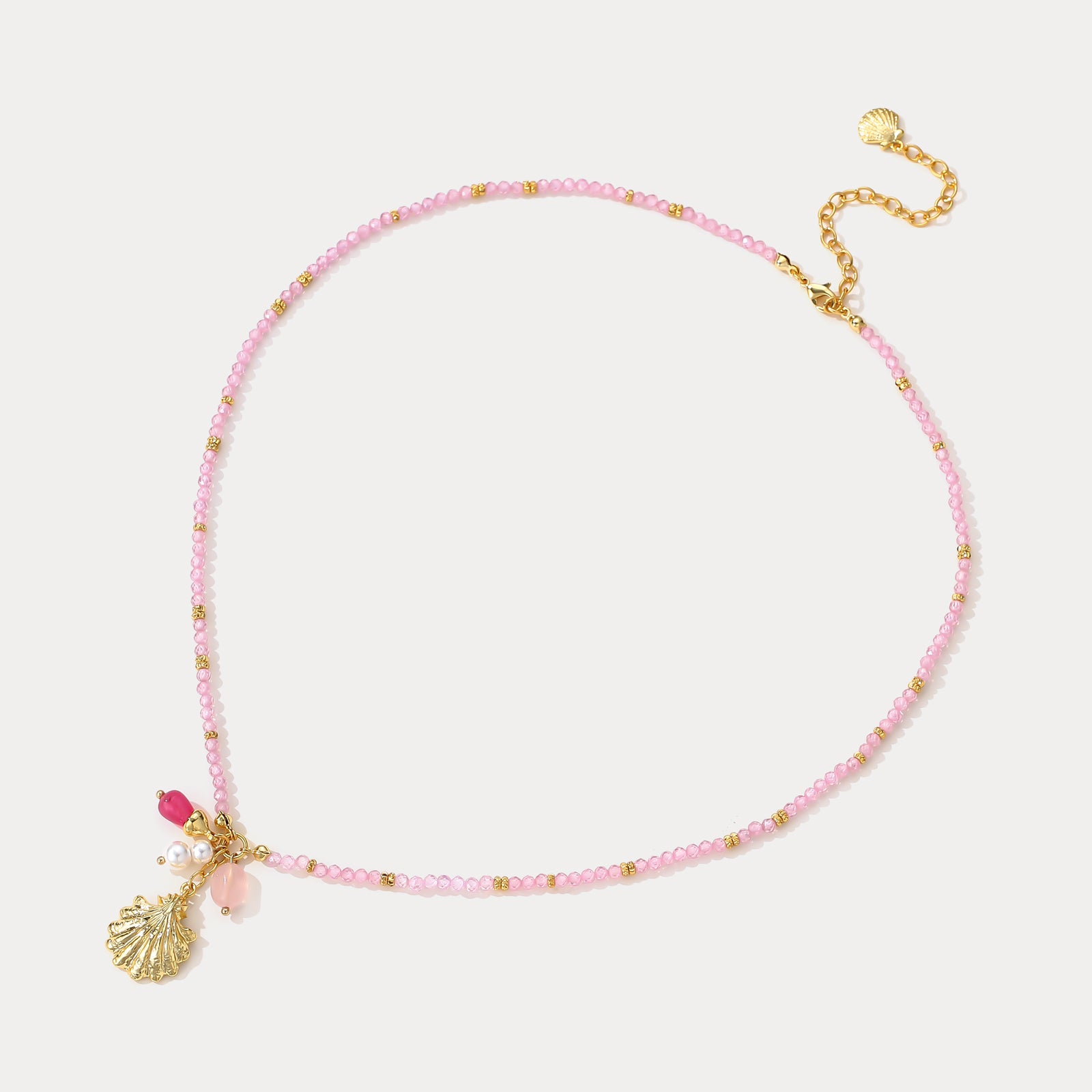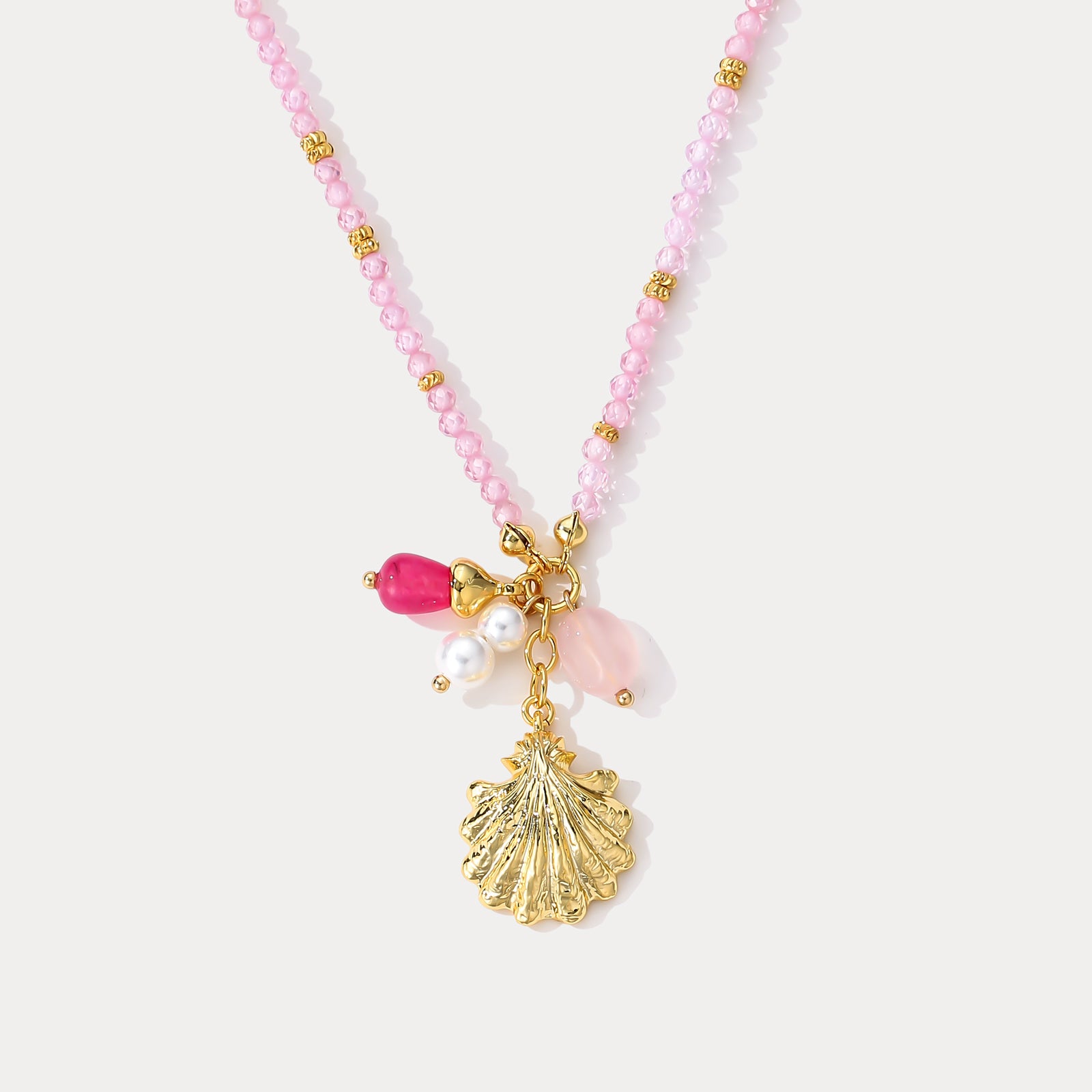 Selenichast Pink Crystal Shell Beaded Necklace