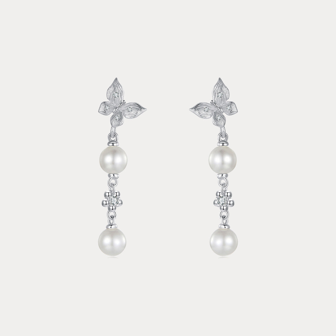 These Silver Butterfly Pearl Drop Earrings flutter with gentle elegance. A delicate silver butterfly rests above a smooth pearl, moving softly as you turn your head. The shimmer of the wings and the glow of the pearl come together in a look that feels feminine, graceful, and quietly magical. As a sweet piece of butterfly jewelry, pearl earrings, and nature jewelry, they bring a soft sparkle to everyday outfits and special occasions alike. Light, dreamy, and full of charm, they feel like tiny wings of beauty you can wear anytime.