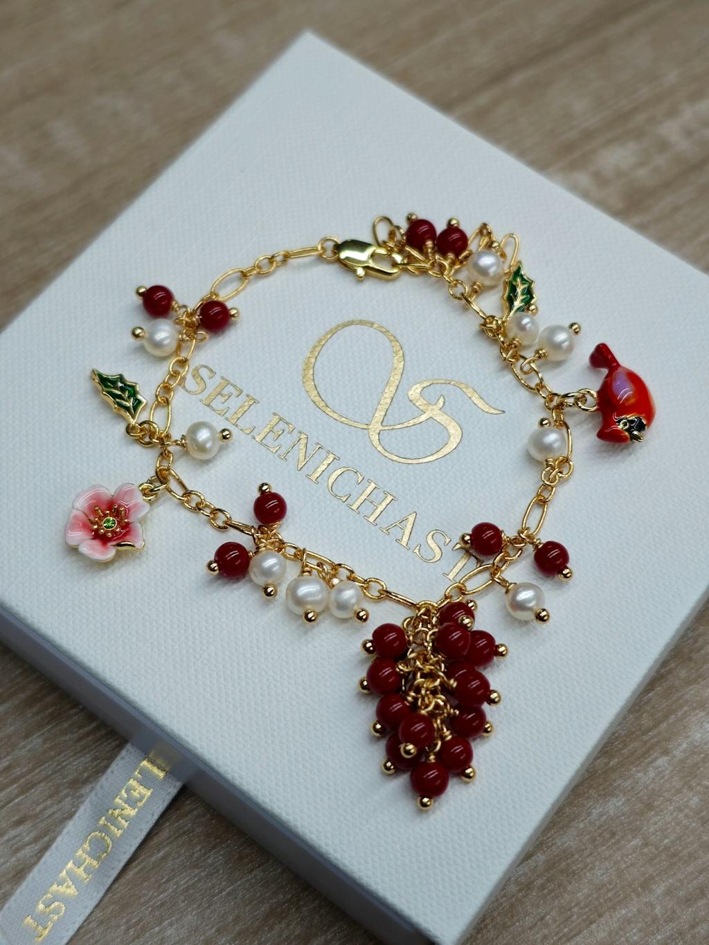 Selenichast Cranberry & Cardinals Charm Bracelet