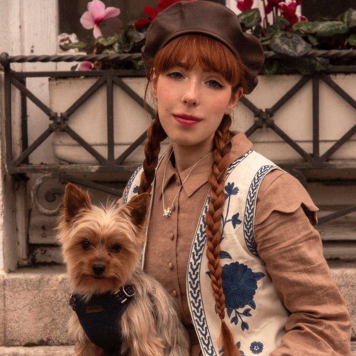 Holding our Yorkshire Terrier Pram Necklace, a whimsical and adorable accessory for dog lovers. This necklace features a Yorkshire Terrier riding in a pram, showcasing the playful and endearing nature of these charming companions. Wear it as a delightful expression of your love for Yorkshire Terriers and add a touch of canine charm to your style. Perfect for those who cherish the joy of furry friendships.