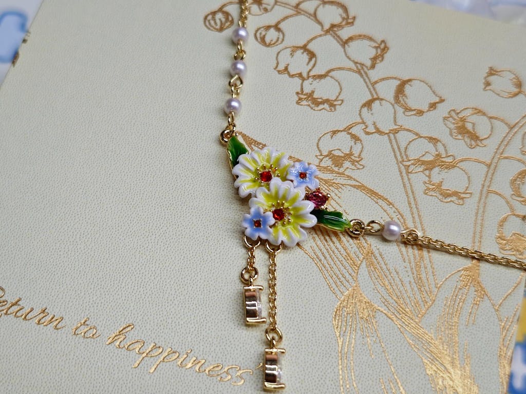 Sunlit petals gather at the center like a tiny summer garden in bloom. This Daisy Necklace is crafted with glossy enamel flowers, their cheerful yellow and white tones bringing a fresh, joyful sparkle to the neckline. Delicate pearl accents and soft dangling details add movement and light, making this enamel daisy necklace feel playful yet refined. Inspired by wildflowers and warm days, it captures the charm of a daisy flower necklace while remaining easy to wear every day. A sweet floral necklace that carries the feeling of sunshine, innocence, and effortless beauty wherever you go.