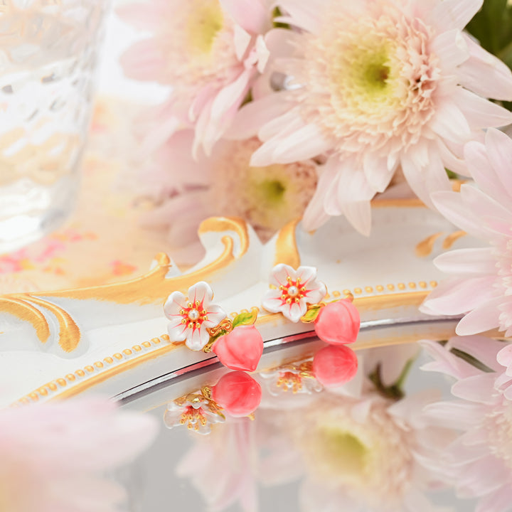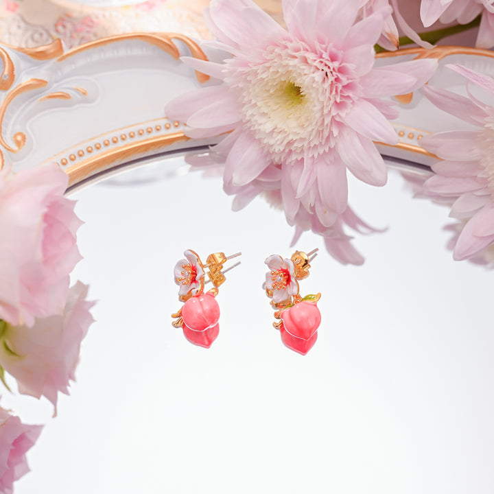 Agregue un toque de dulzura a su estilo con nuestros pendientes florales de durazno. Este encantador accesorio presenta un grupo de duraznos rosados, que encarna la belleza de la generosidad de la naturaleza y la frescura del verano. El melocotón exuda un encanto cálido y acogedor, por lo que es un complemento perfecto para su colección de joyas. Abraza la frescura afrutada con estos pendientes inspirados en la naturaleza. 🍑🌸
