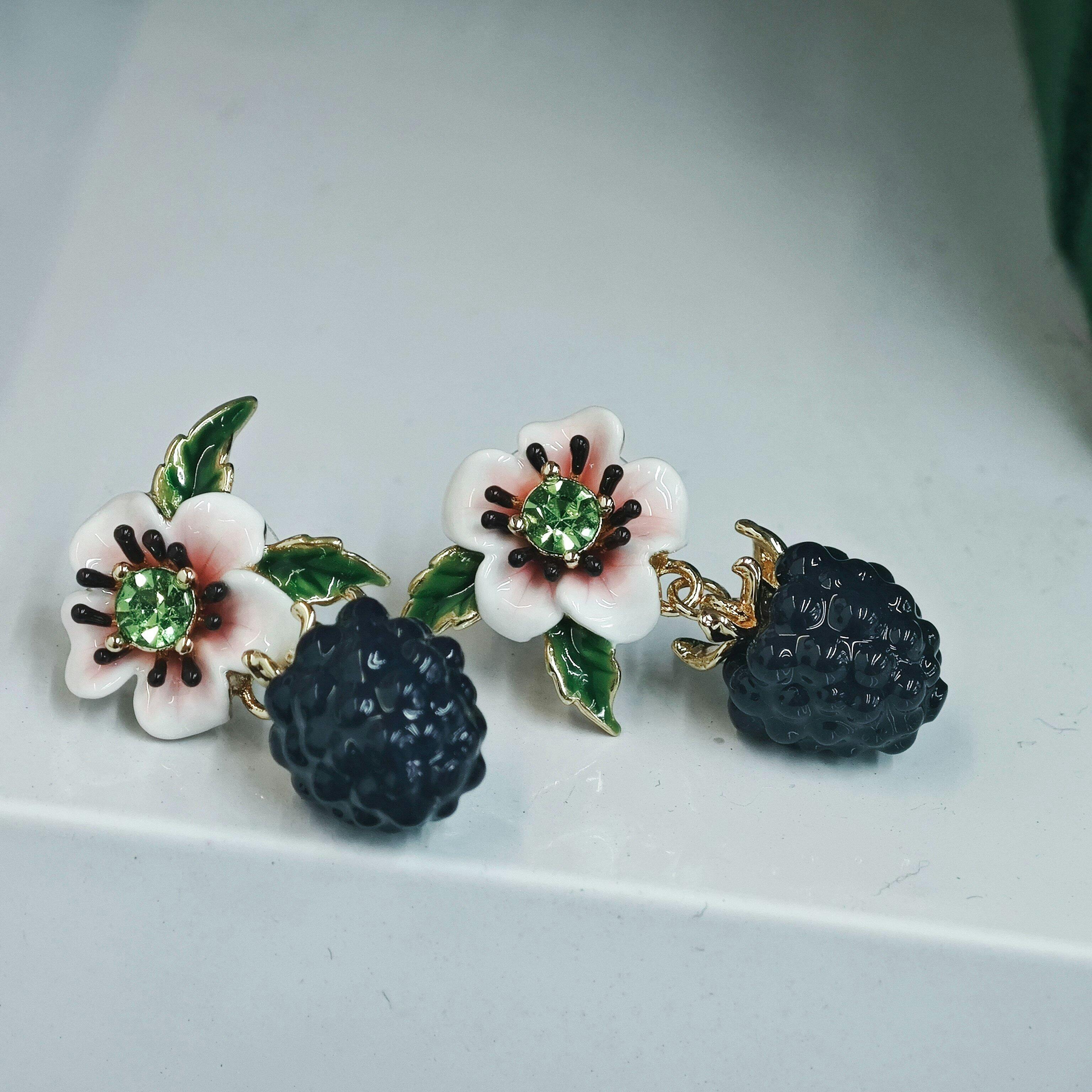 Crafted with a delicate blackberry flower design, these earrings add a touch of nature to any outfit. Made with attention to detail, these earrings are perfect for those who appreciate the beauty of nature. Elevate your style and show off your love for nature with these stunning Blackberry Flower Earrings.
