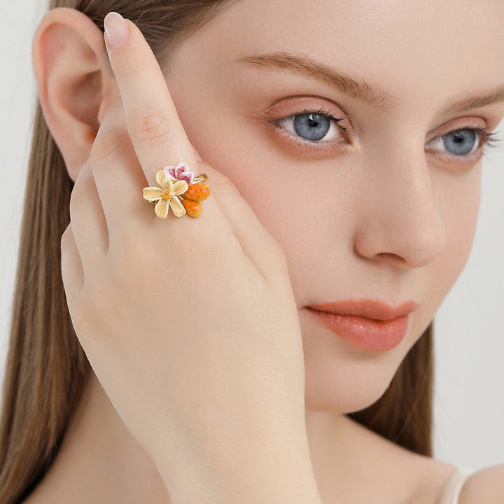 Florece con gracia con el anillo de flores de pera dulce. Hecho a partir de latón con delicados acentos de esmalte, este anillo muestra un diseño cautivador inspirado en la belleza de las flores de pera. Perfecto para el uso diario, agrega un toque de elegancia inspirada en la naturaleza a cualquier atuendo. Ya sea como un regalo para un ser querido o una delicia para usted, este anillo encarna la esencia de la belleza natural y seguramente será apreciado.