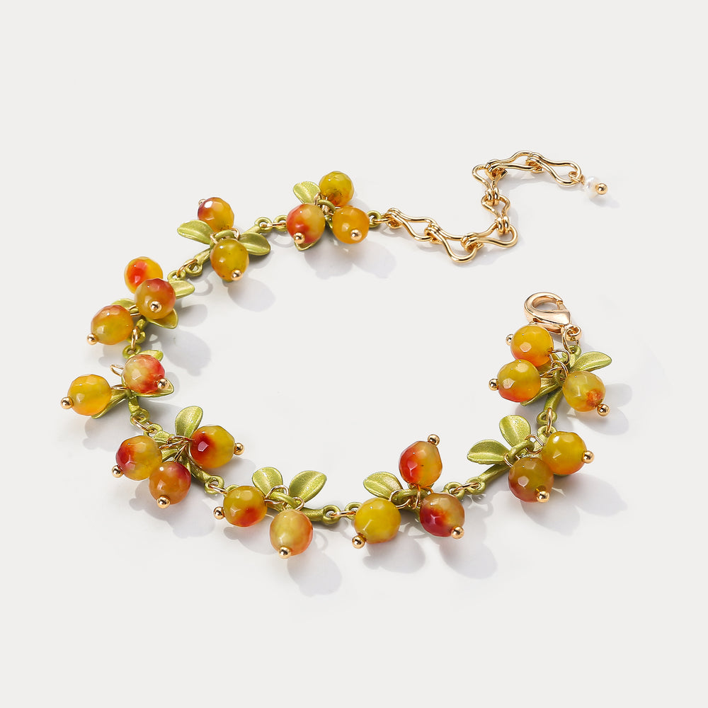 Feel the warmth of a golden autumn with this beautiful Cloudberry Bracelet. Named for the rare Arctic berry, this piece captures its vibrant orange hue in polished, luminous stones. It’s a warm and enchanting accessory that brings the vibrant colors of the fall harvest to your wrist. 👉 Shop More Berry Jewelry.