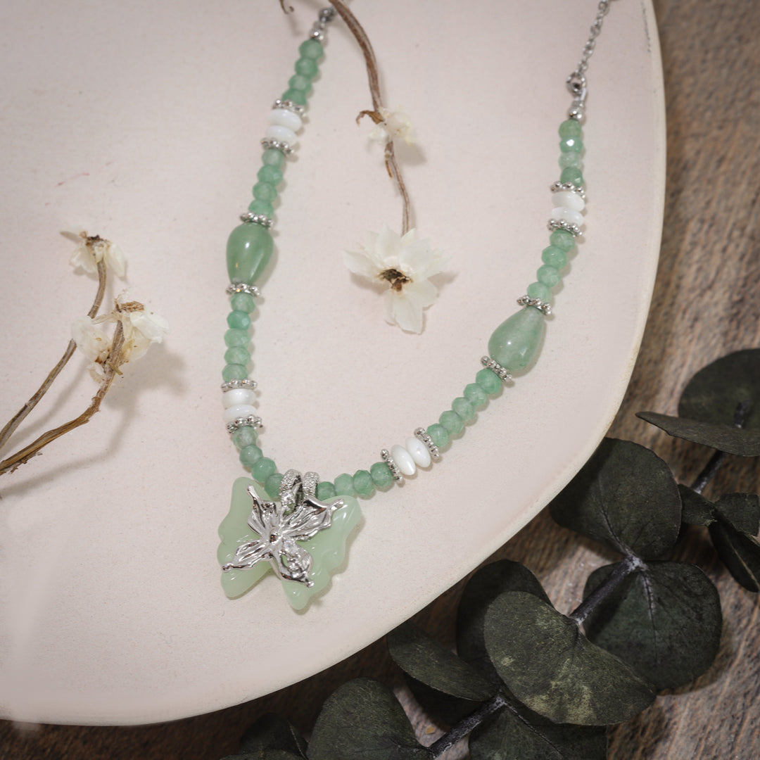 Discover the delicate elegance of the Jade Butterfly Necklace from our Butterfly Jewelry collection. Handcrafted with platinum-plated brass, this enchanting necklace features a gracefully designed butterfly pendant adorned with natural jade stone. The soft, serene hues of the jade contrast beautifully with the sleek, polished platinum, creating a piece that is both sophisticated and timeless. Ideal for adding a touch of freshness to any outfit, the Jade Butterfly Necklace is a stunning choice for those who appreciate both beauty and meaning in their jewelry. Embrace the graceful charm of butterflies with this exquisite accessory.