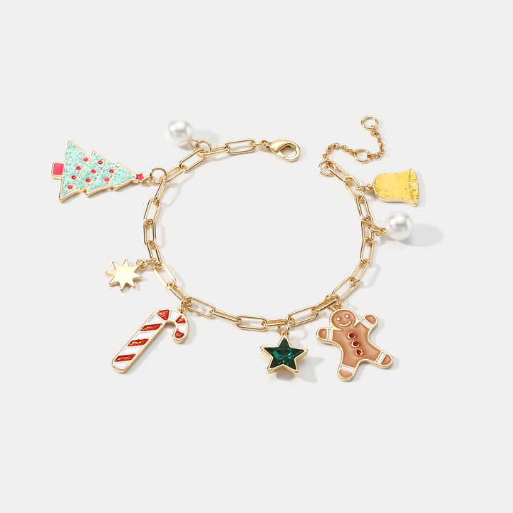 Selenichast Christmas Tree Gingerbread Man Bracelet