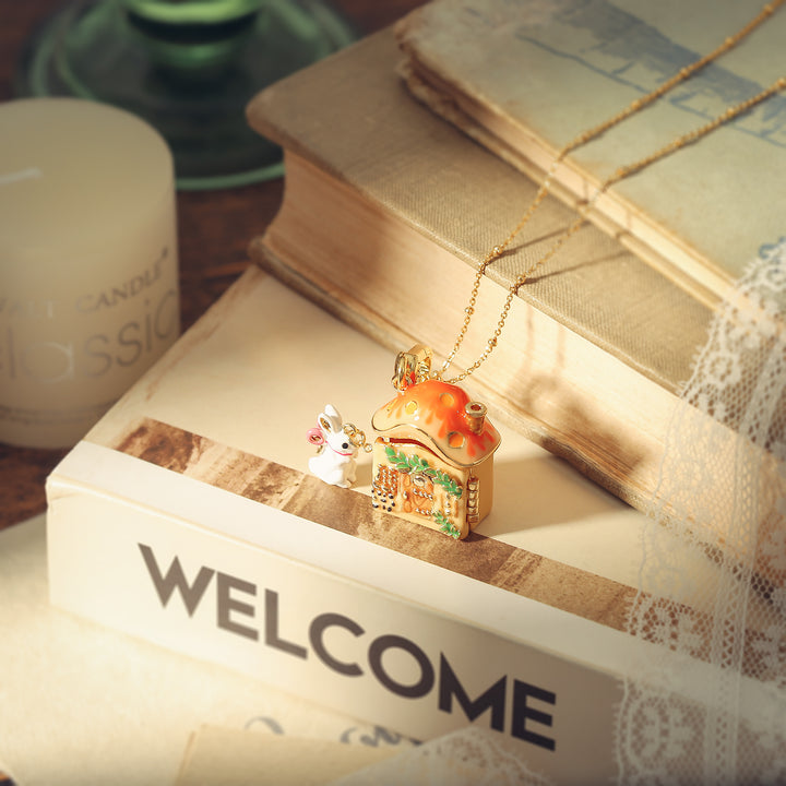 Este collar de placas de casas de hongos, con una delicada silueta de conejo encaramada sobre una encantadora casa de hongos, ofrece un lanzamiento atemporal de la vida cotidiana, creando una declaración de elegancia y sabor cautivadoramente linda.🐇🍄