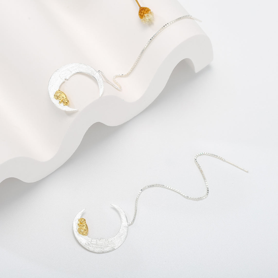 Sweet Dream Little Puppy & Moon Silver Earrings