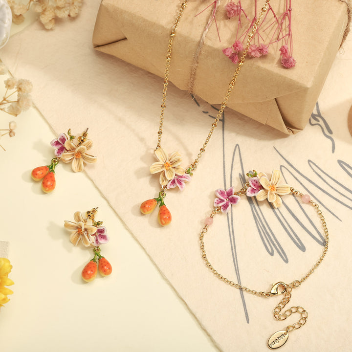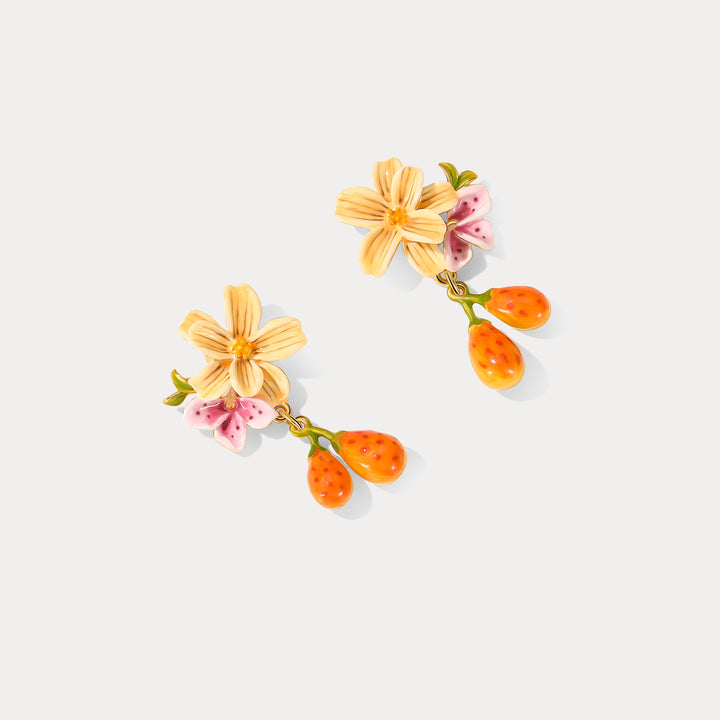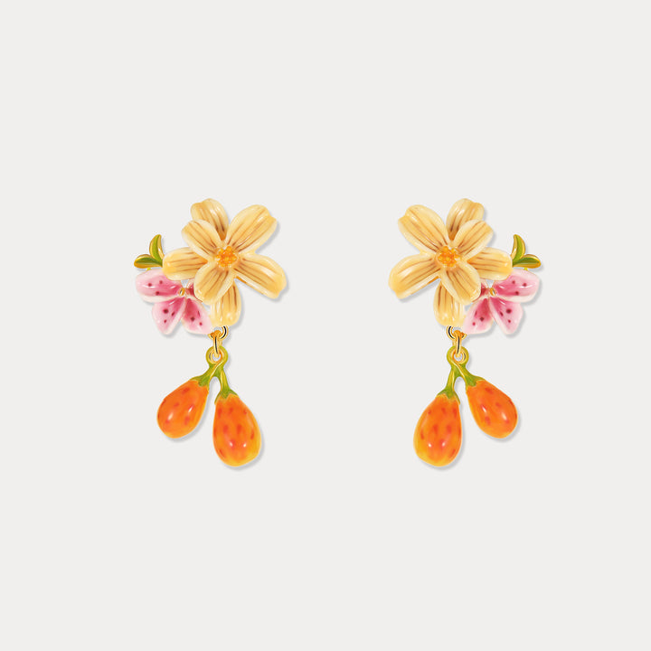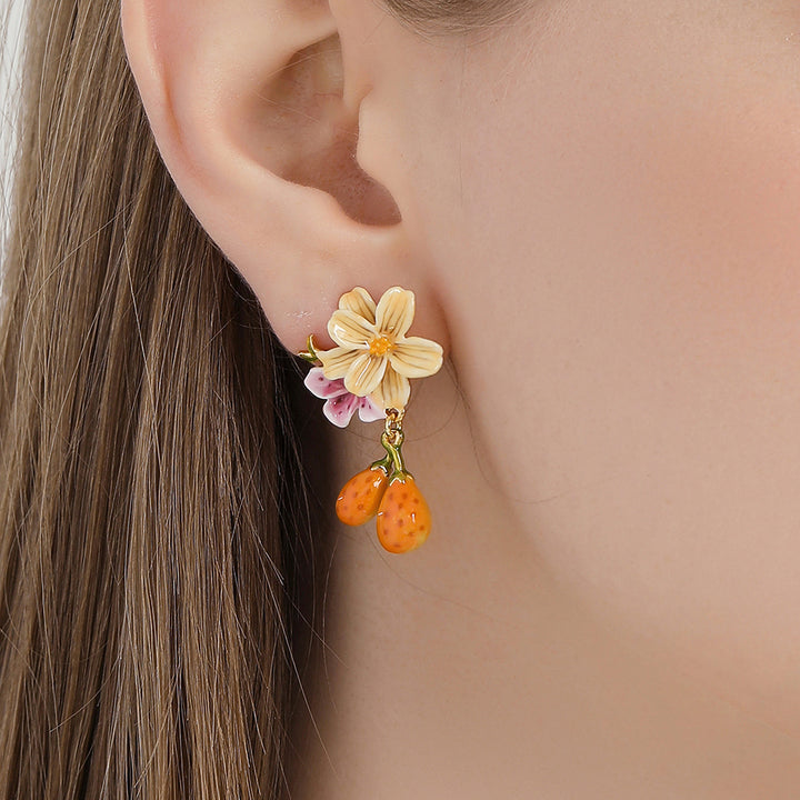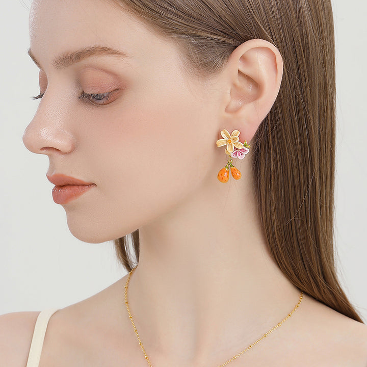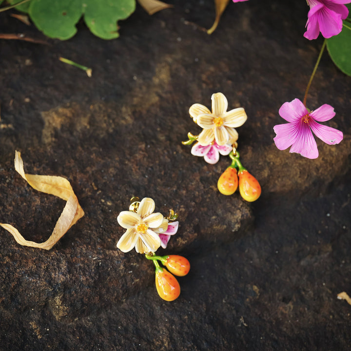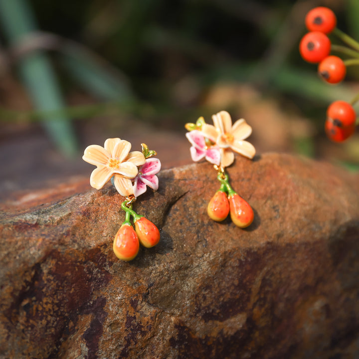 Eleve su estilo con los cautivadores pendientes de flores de pera dulce. Hecho de latón con delicados acentos de esmalte, estos pendientes muestran un diseño encantador inspirado en flores de pera. Perfecto para el uso diario, aportan un toque de belleza de la naturaleza a cualquier atuendo. Ya sea como un regalo o un placer personal, estos pendientes inspirados en la naturaleza son una elección elegante que celebra la gracia y el encanto de la elegancia floral.