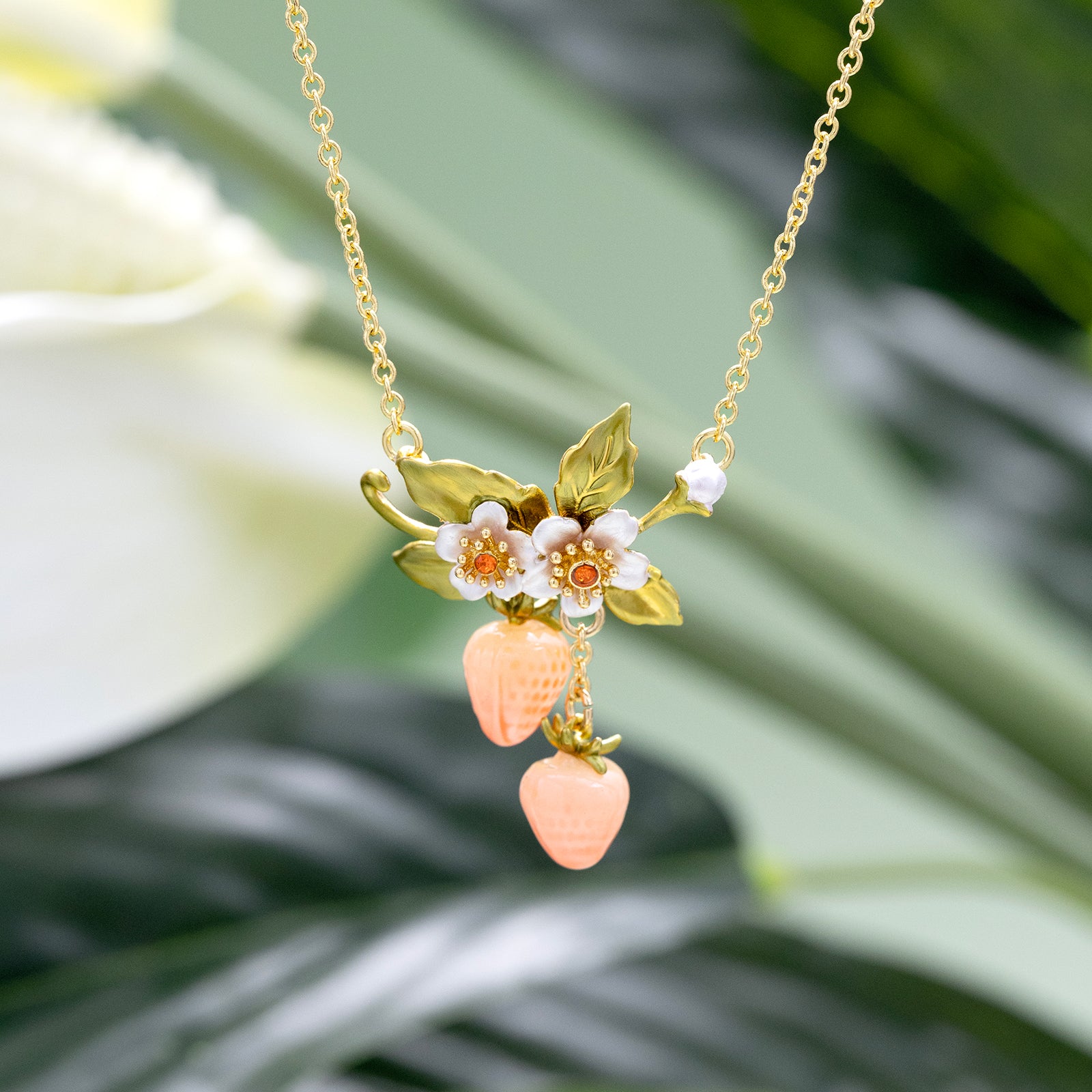 The Strawberry Necklace highlights the sweet character of garden berries through a vibrant glass strawberry pendant. As part of handmade glass jewelry, the pendant shows delicate color and shine, bringing a lively touch to everyday styling. Inspired by fruit and blooming gardens, it belongs to the world of fruit jewelry, botanical jewelry, and nature-inspired jewelry. Its delicate structure makes it a beautiful dainty necklace that can be worn alone or styled as a layering necklace. The Strawberry Necklace fits naturally into summer jewelry and vacation jewelry collections, adding a fresh seasonal accent. It also makes a thoughtful gift for her and a charming birthday gift for women who love cute accessories.