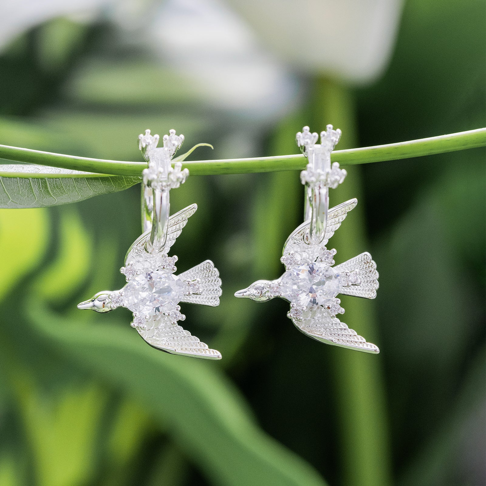 Selenichast Swallow Huggie Earrings Silver Earrings
