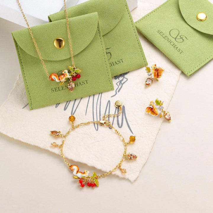 Squirrel Diamond Acorn Jewelry Set