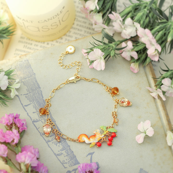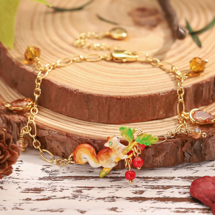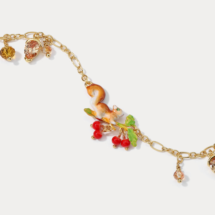 Enamel Squirrel Diamond Acorn Bracelet