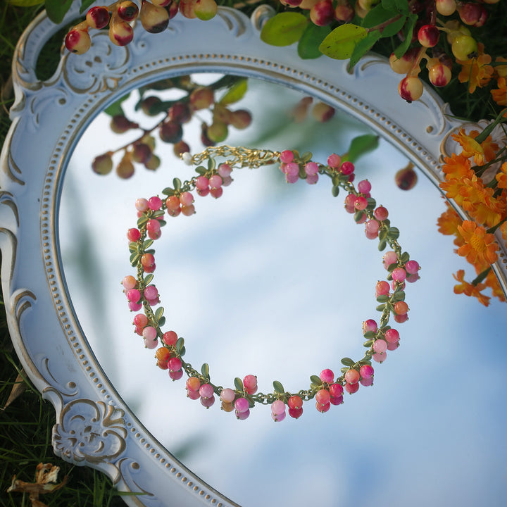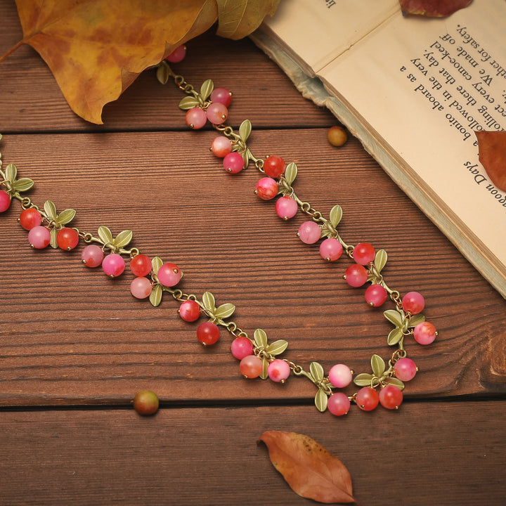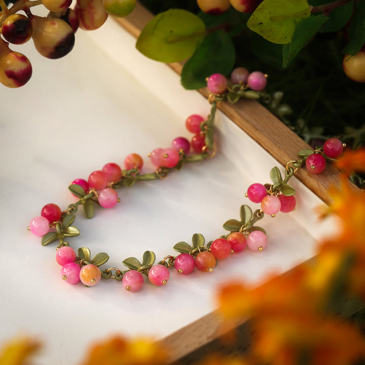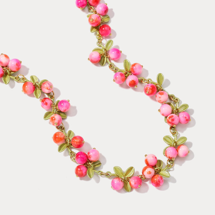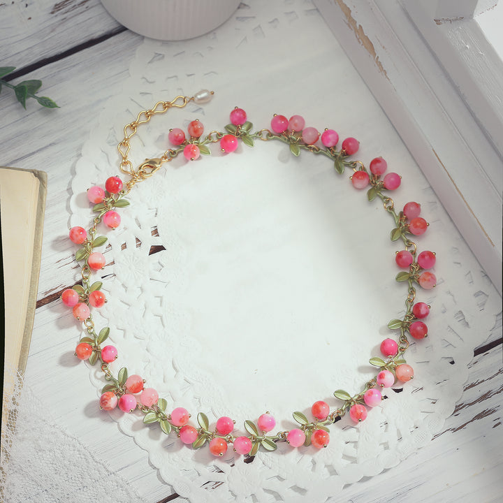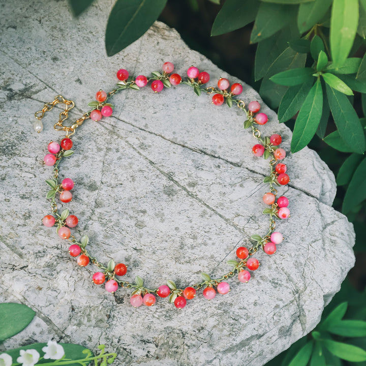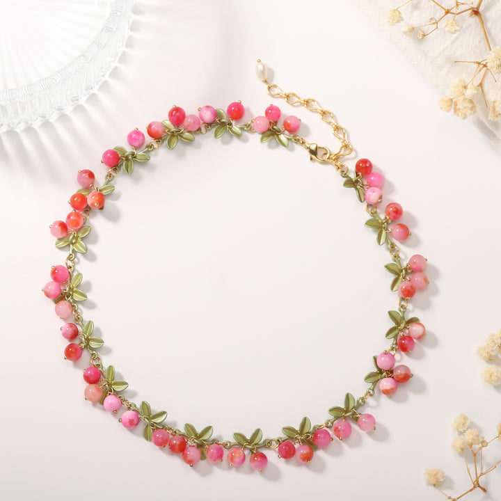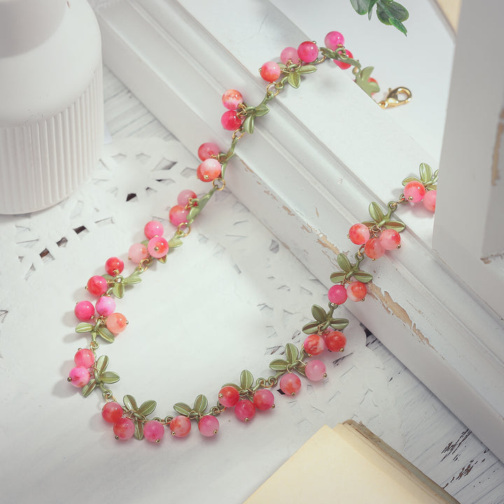 Este collar Pinkberry es un accesorio atemporal y elegante hecho de piedra natural y con una hermosa hoja verde en medio de una primavera etérea. Una pieza exquisita que traerá un estilo sofisticado de lujo y un estilo incomparable a cualquier atuendo.