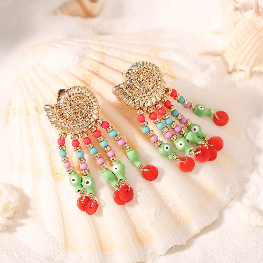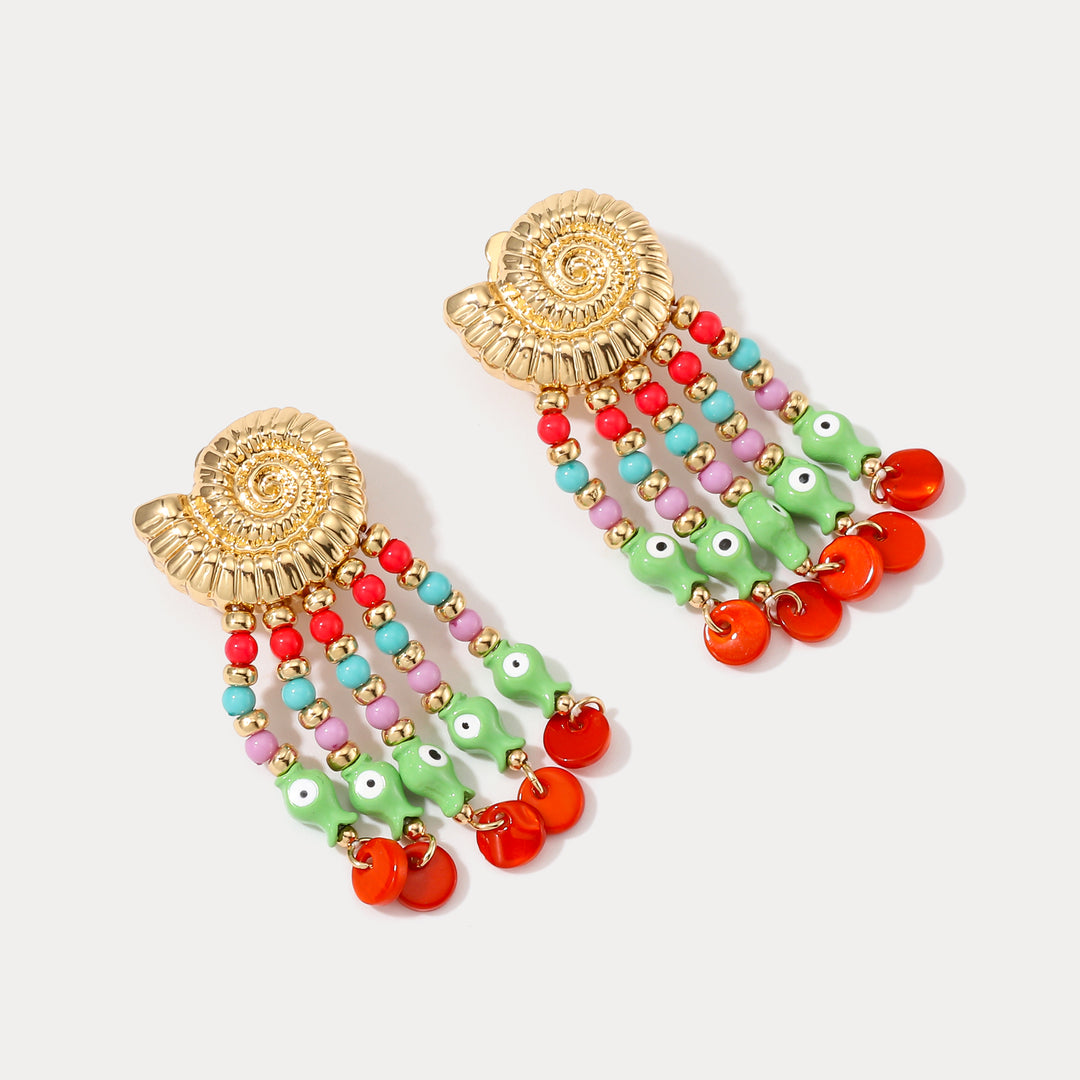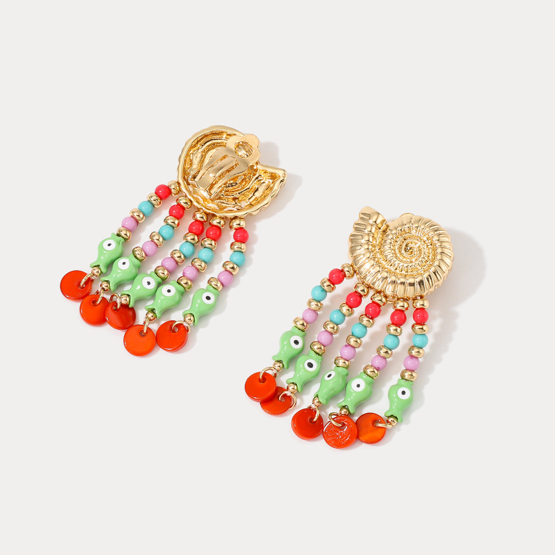 Selenichast Colorful Conch Clip On Beaded Earrings