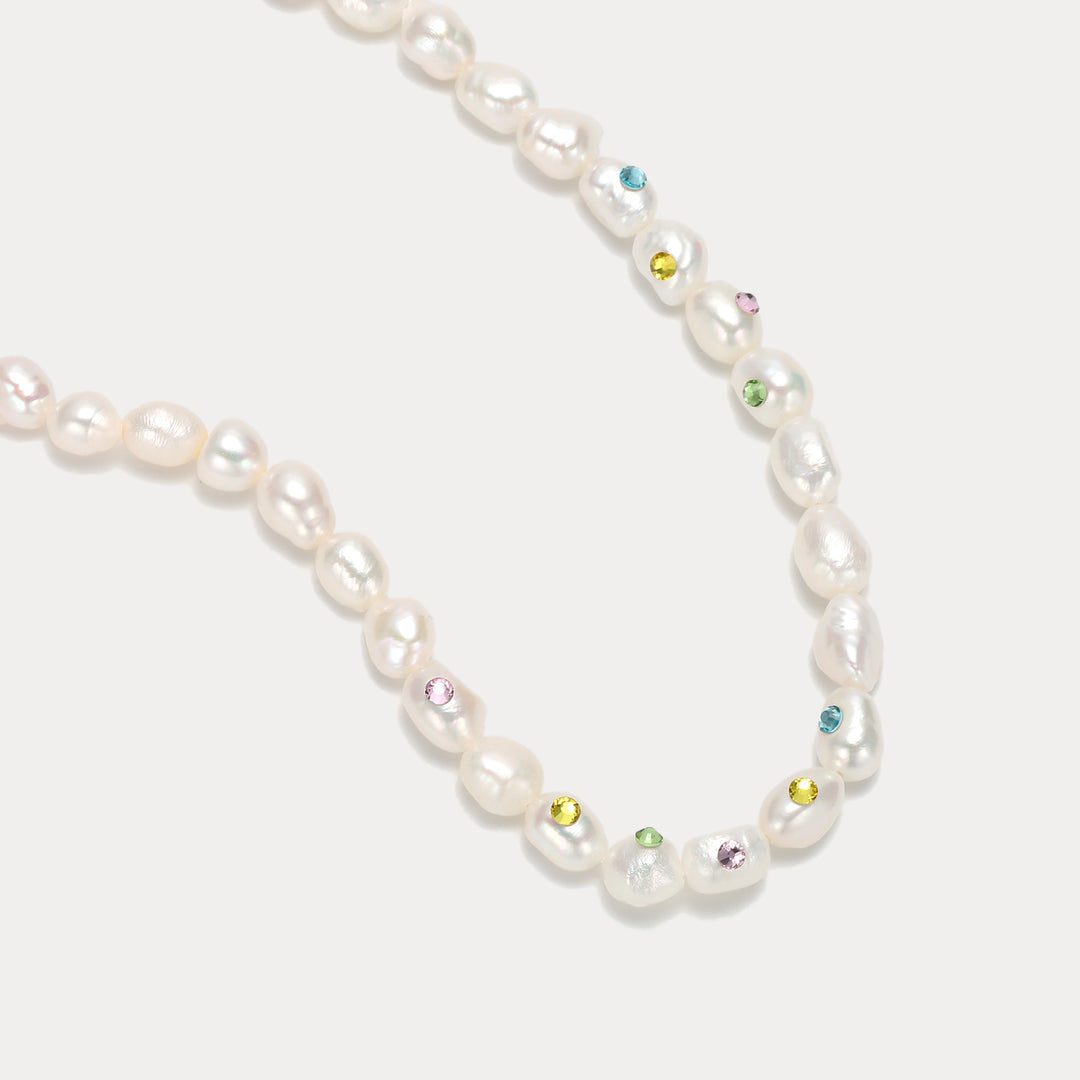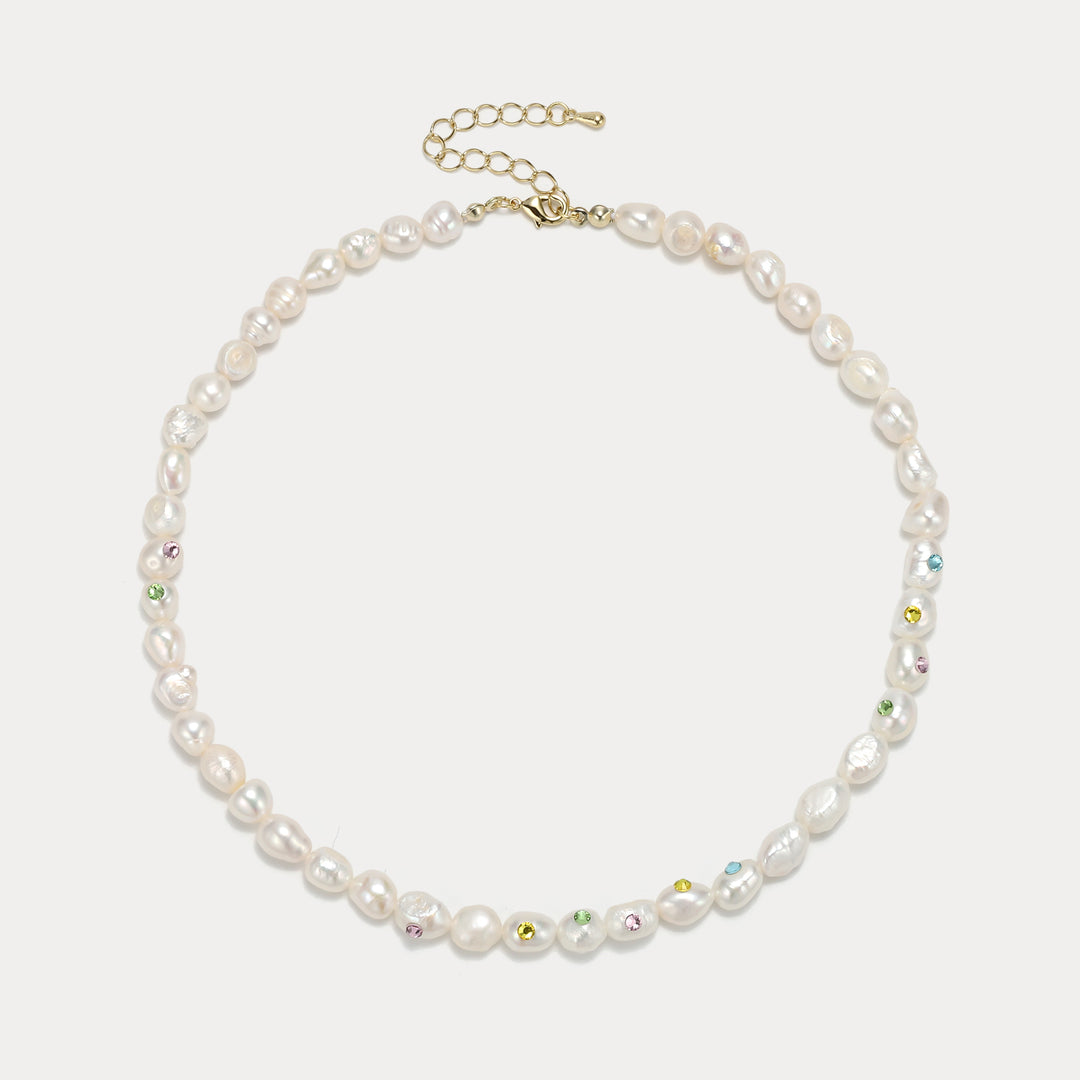 Selenichast Rainbow Rhinestone Baroque Pearl Necklace