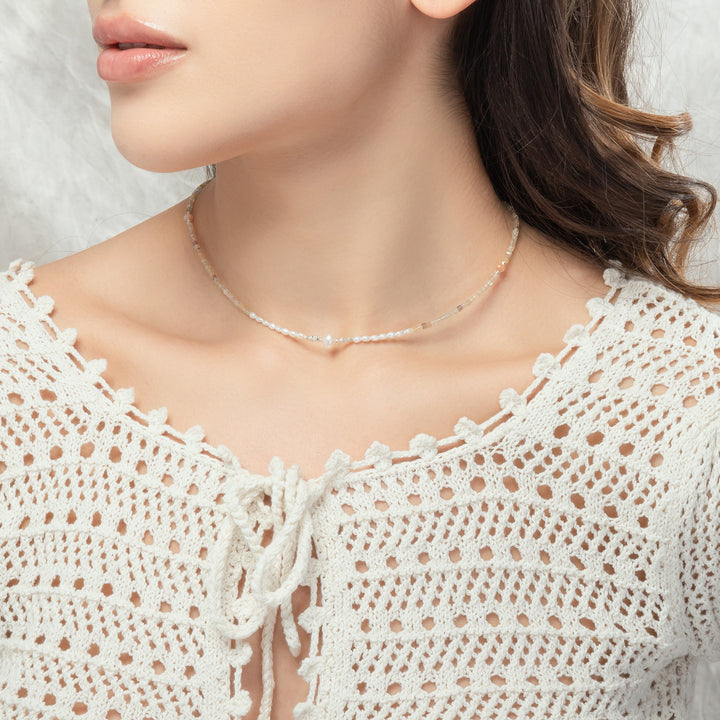 Multi Pearl Seed Bead Silver Fashion Necklace