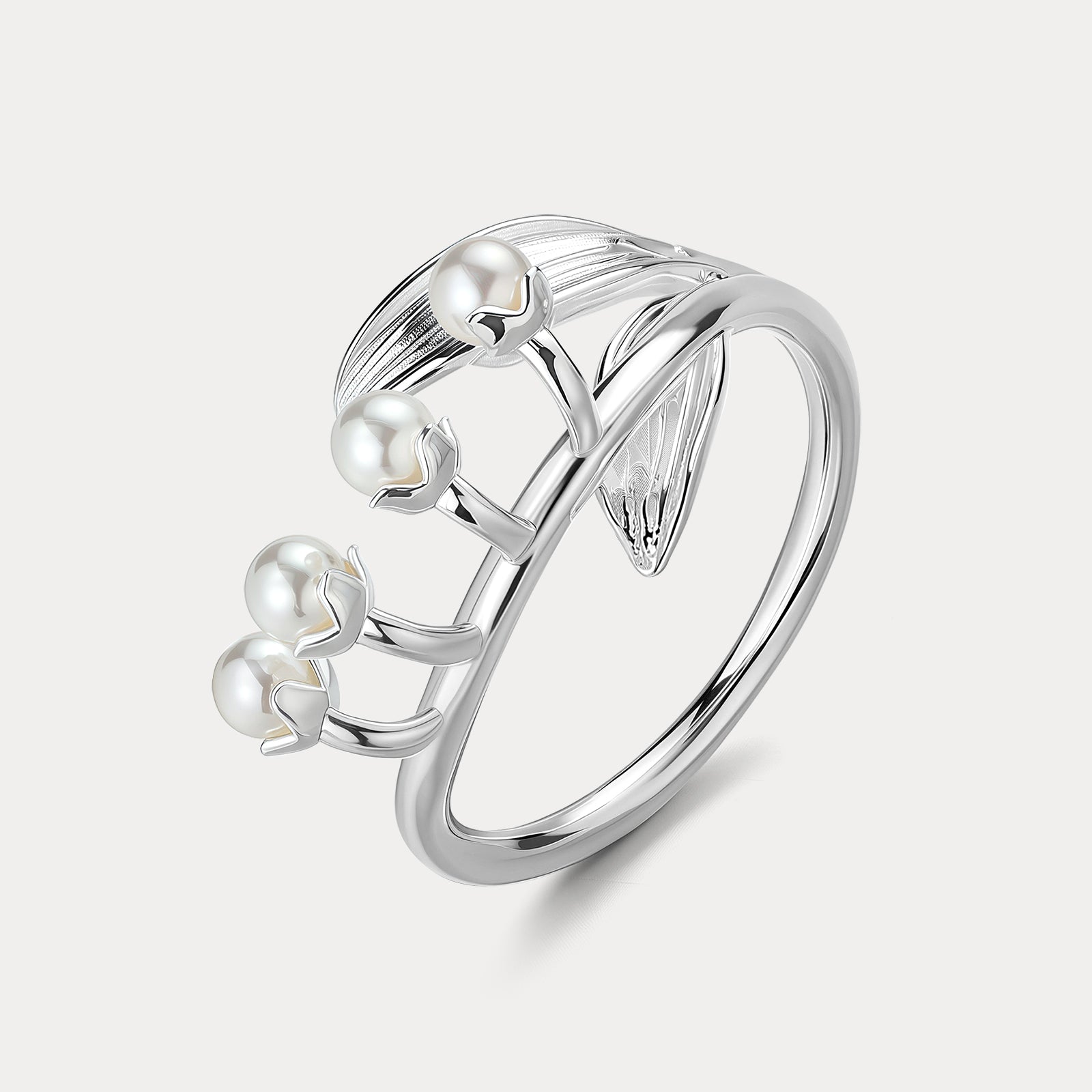 Lily of the valley blooms gently across this sterling silver ring, capturing the quiet poetry of spring gardens. The floral silhouette brings a soft nature inspired jewelry aesthetic while keeping a clean minimalist structure for everyday wear. Its lightweight feel makes it ideal for stacking with other sterling silver jewelry pieces. A thoughtful gift for her who loves botanical details and timeless design.