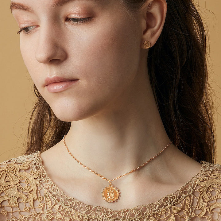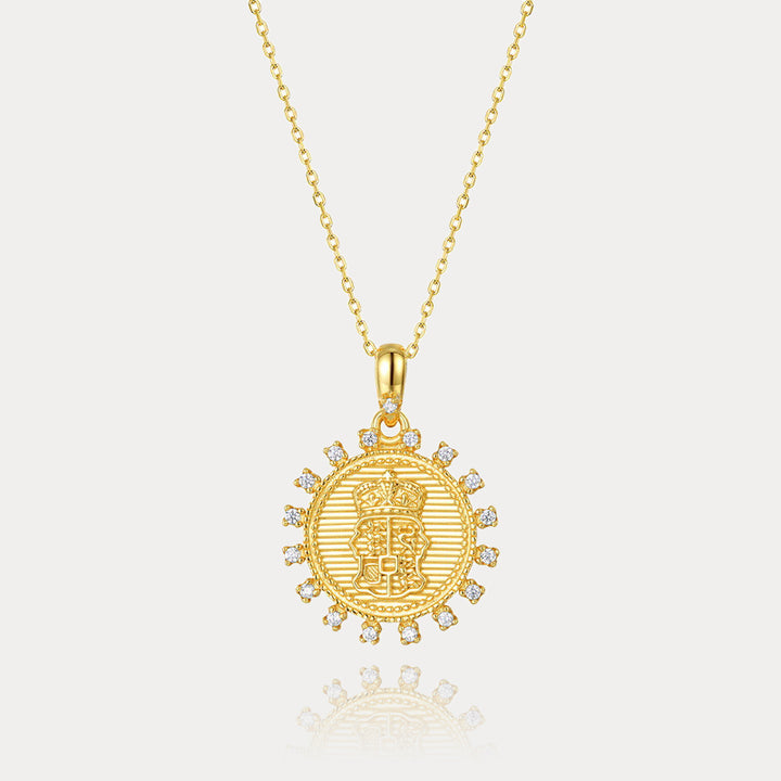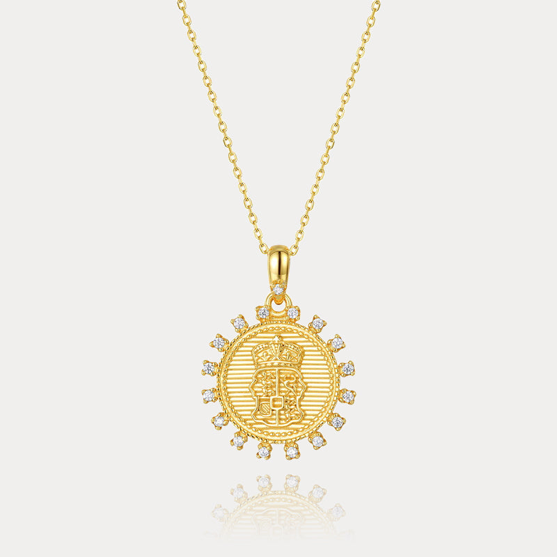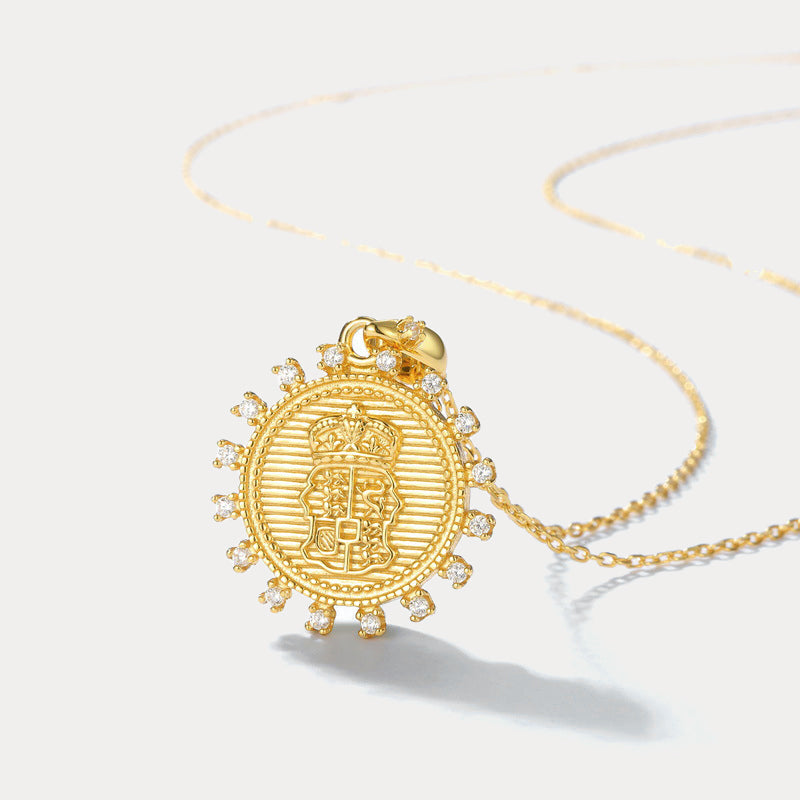 Eleve su aspecto diario con el collar de medallón de la corona regal, una adición impresionante a su Essential de todos los días recopilación. Esta exquisita pieza presenta un colgante de monedas llamativo hecho meticulosamente de oro de 10k en capas sobre plata brillante. En su centro, un motivo de la corona real está adornado con piedras brillantes de circonia cúbica, capturando la esencia de la simplicidad. El collar de medallón de oro combina a la perfección estilos clásicos y contemporáneos, por lo que es un accesorio versátil para complementar cualquier conjunto. Ya sea usado en solitario o en capas con otras cadenas delicadas, este collar de colgantes de monedas eleva sin esfuerzo su aspecto con un toque de opulencia discreta, perfecta tanto para salidas casuales como para ocasiones especiales.